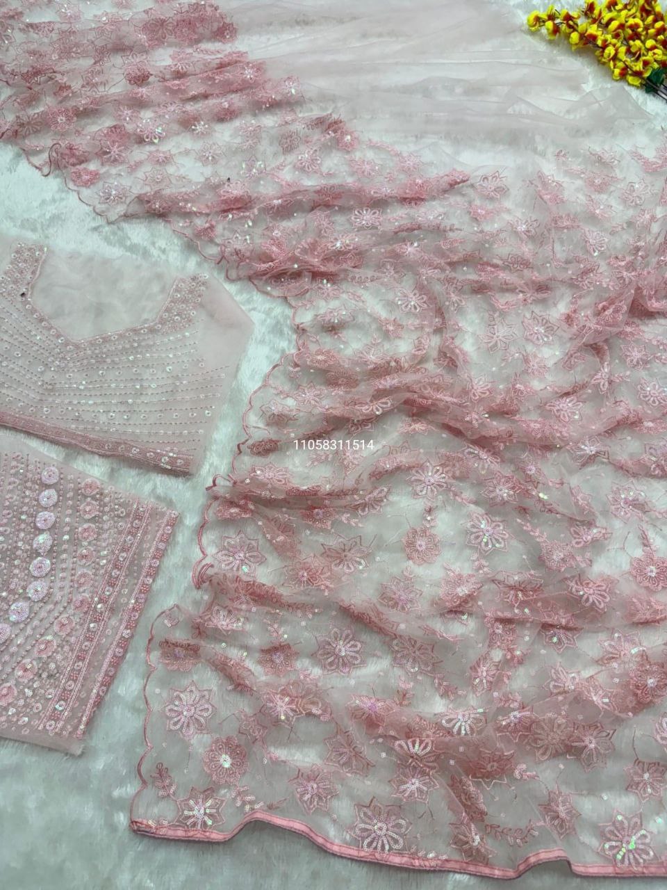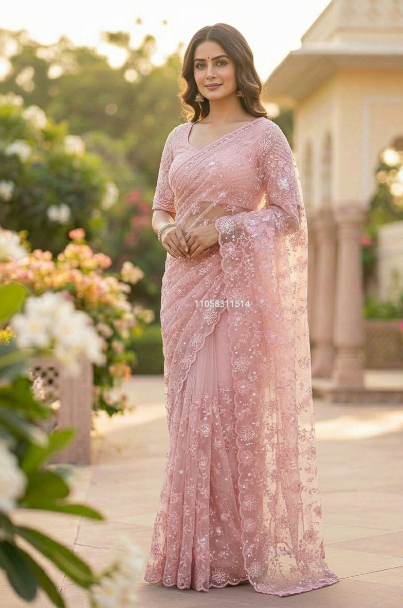Elegance Bloom Organza Handwork Saree