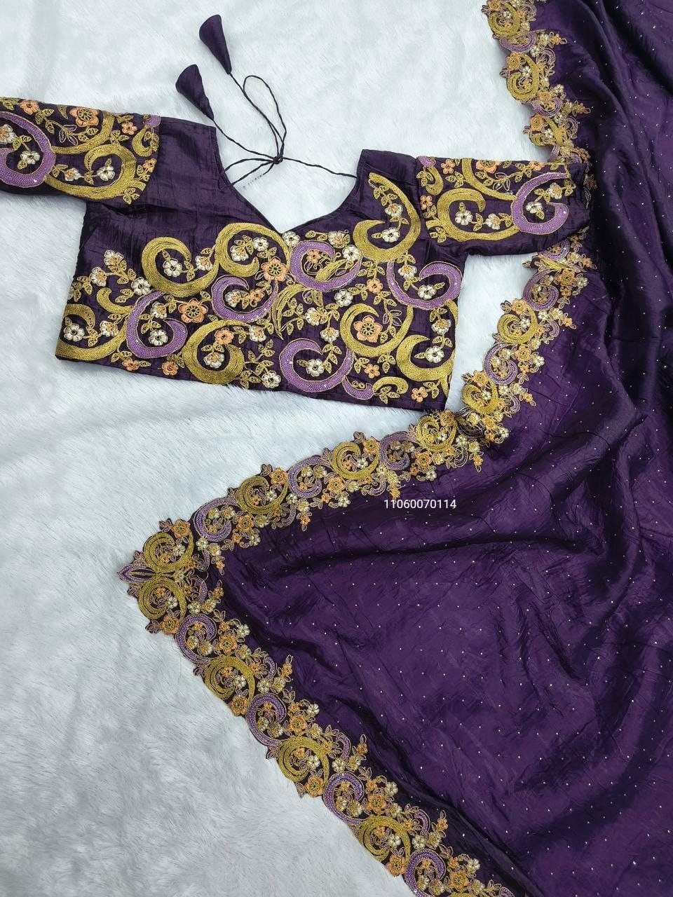 Purple Fendy Satin Swarovski Saree