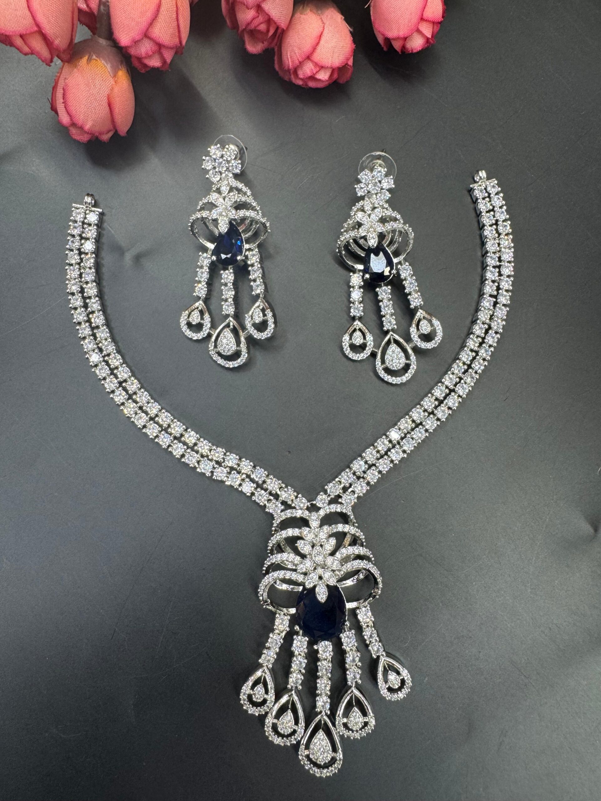 Premium American Diamond Necklace Set with Earrings
