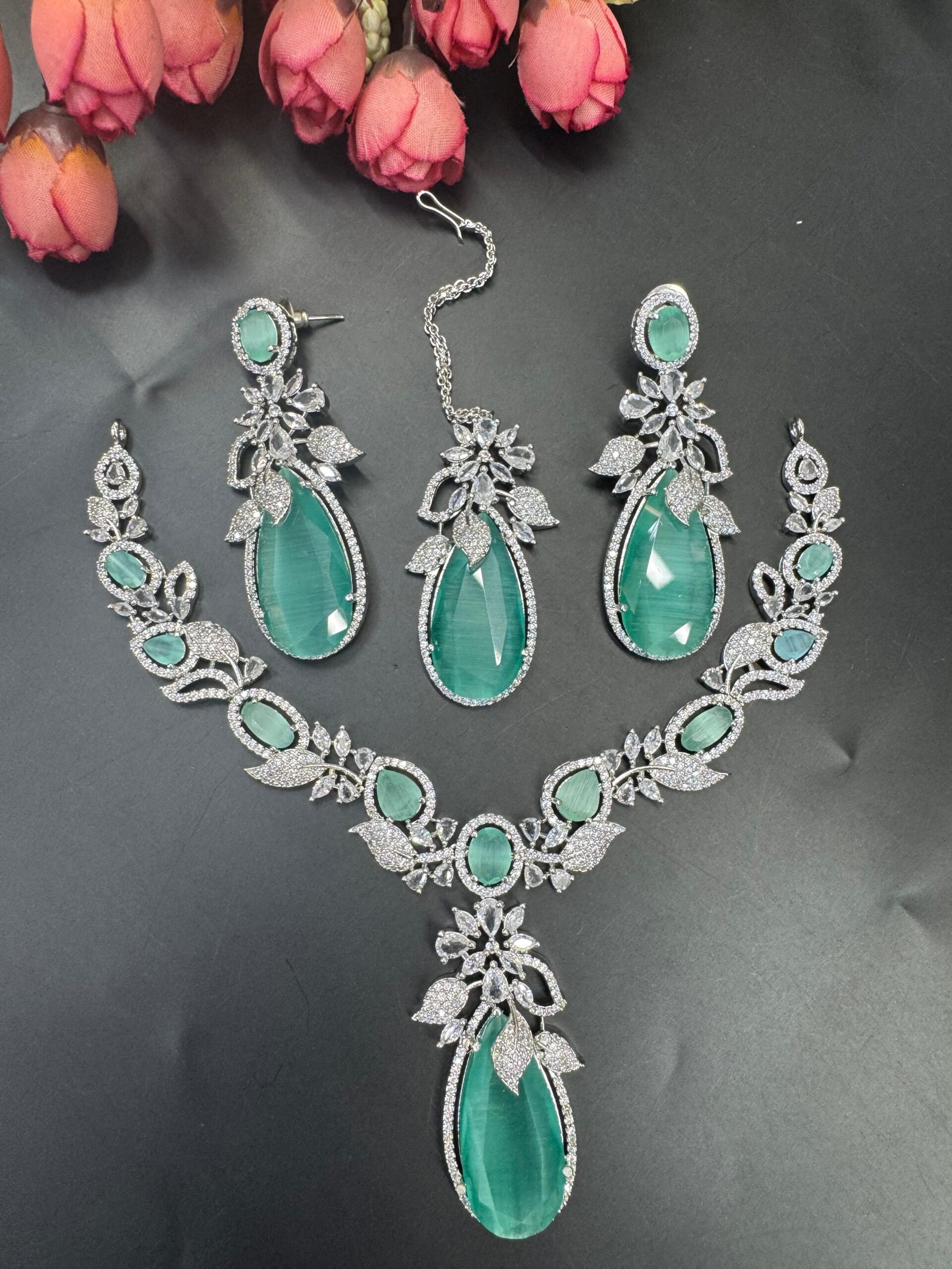 Moissanite AD Jewelry Set with Earrings & Maangtika