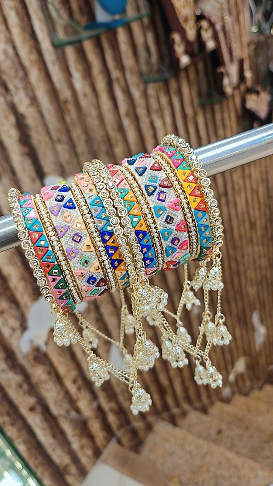 Bahubali Copper Stone Moti Bridal Bangles Set with Kalira Latkan & Jhumki