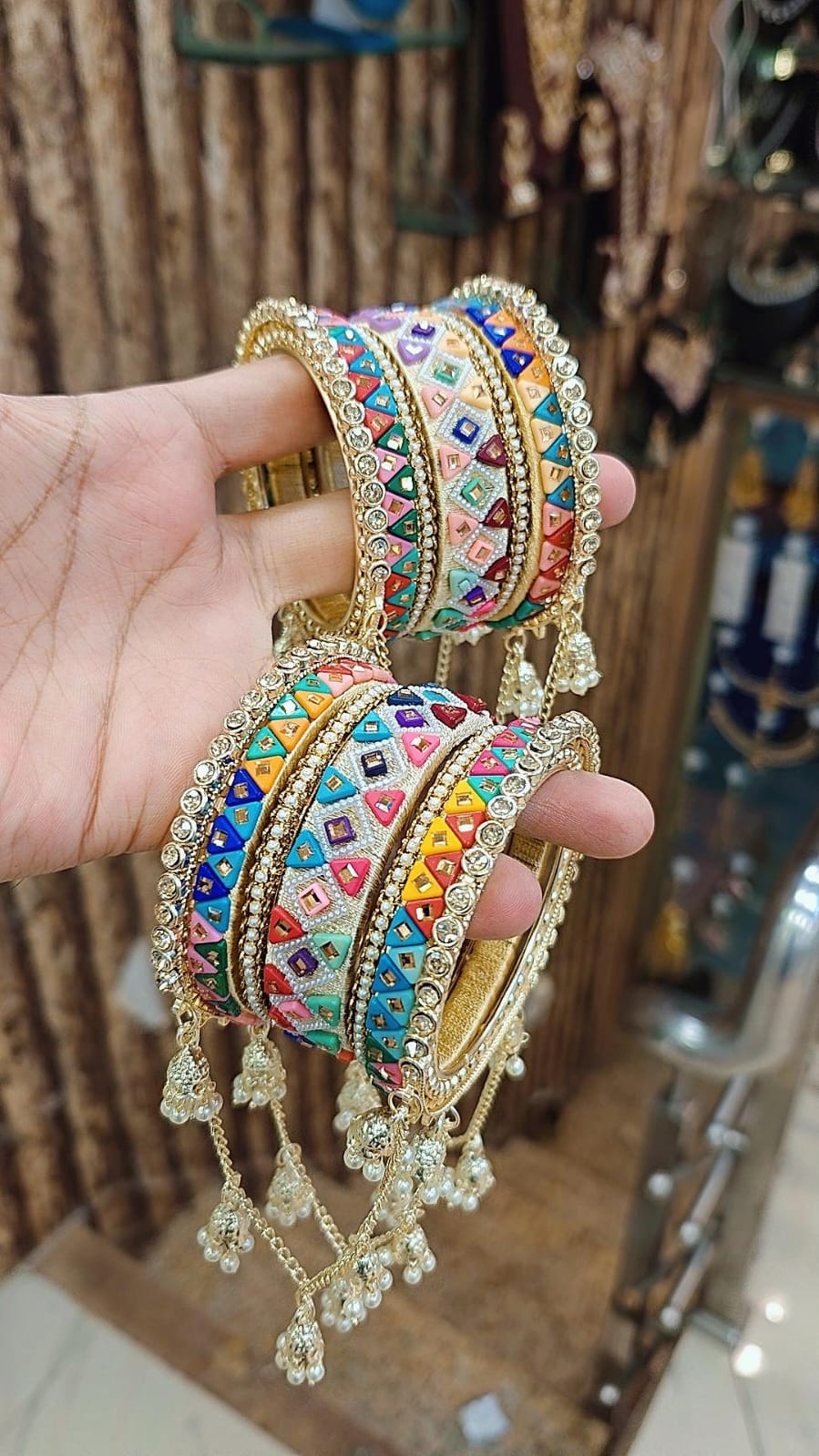 Premium Velvet Stone Bangles Set with Joint Jhumar