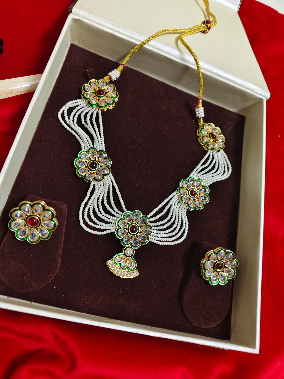 Red Kundan Jewelry Set with Earrings