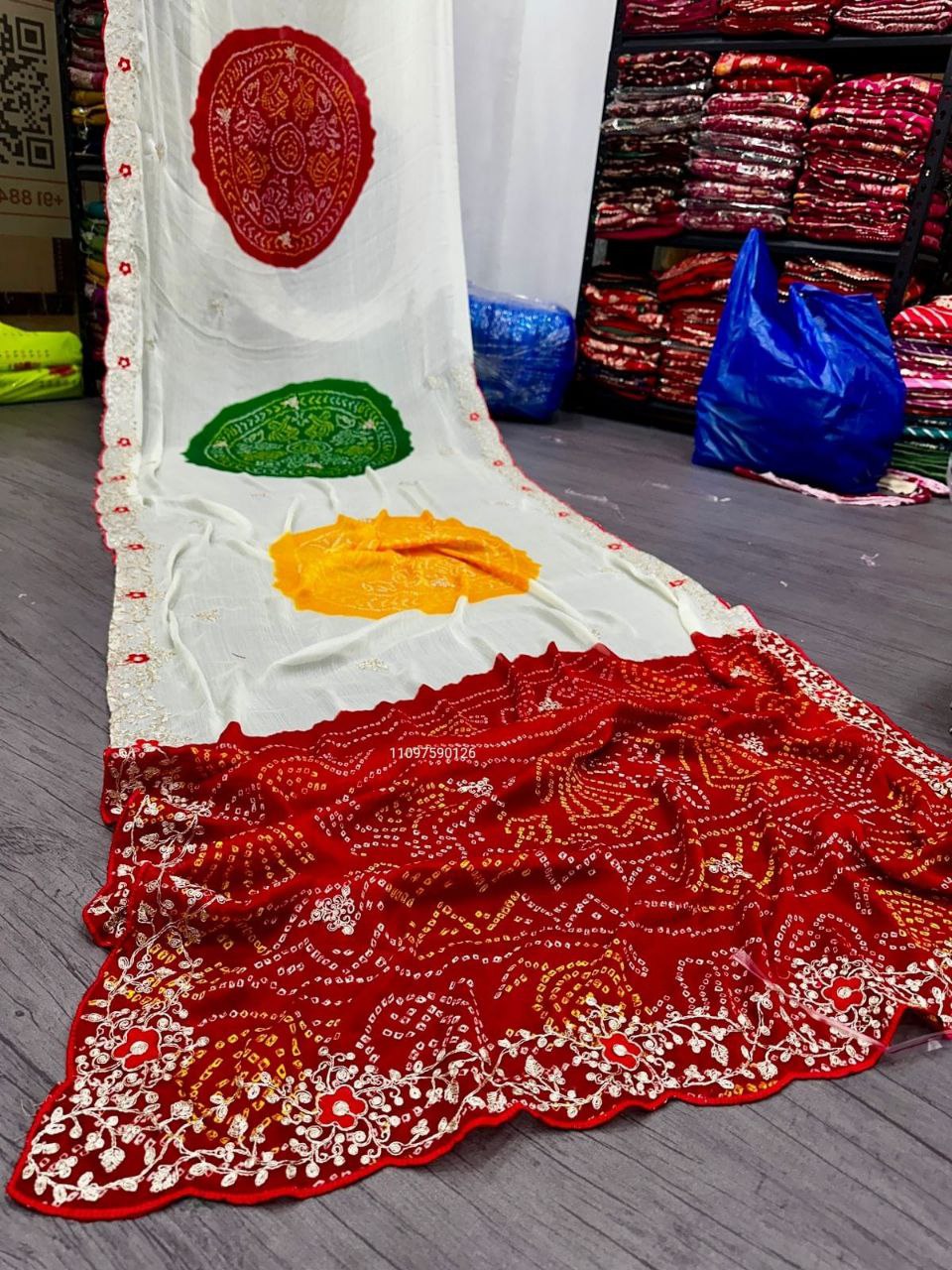 Pure Fendy Silk Handwork Saree with Pearl Border