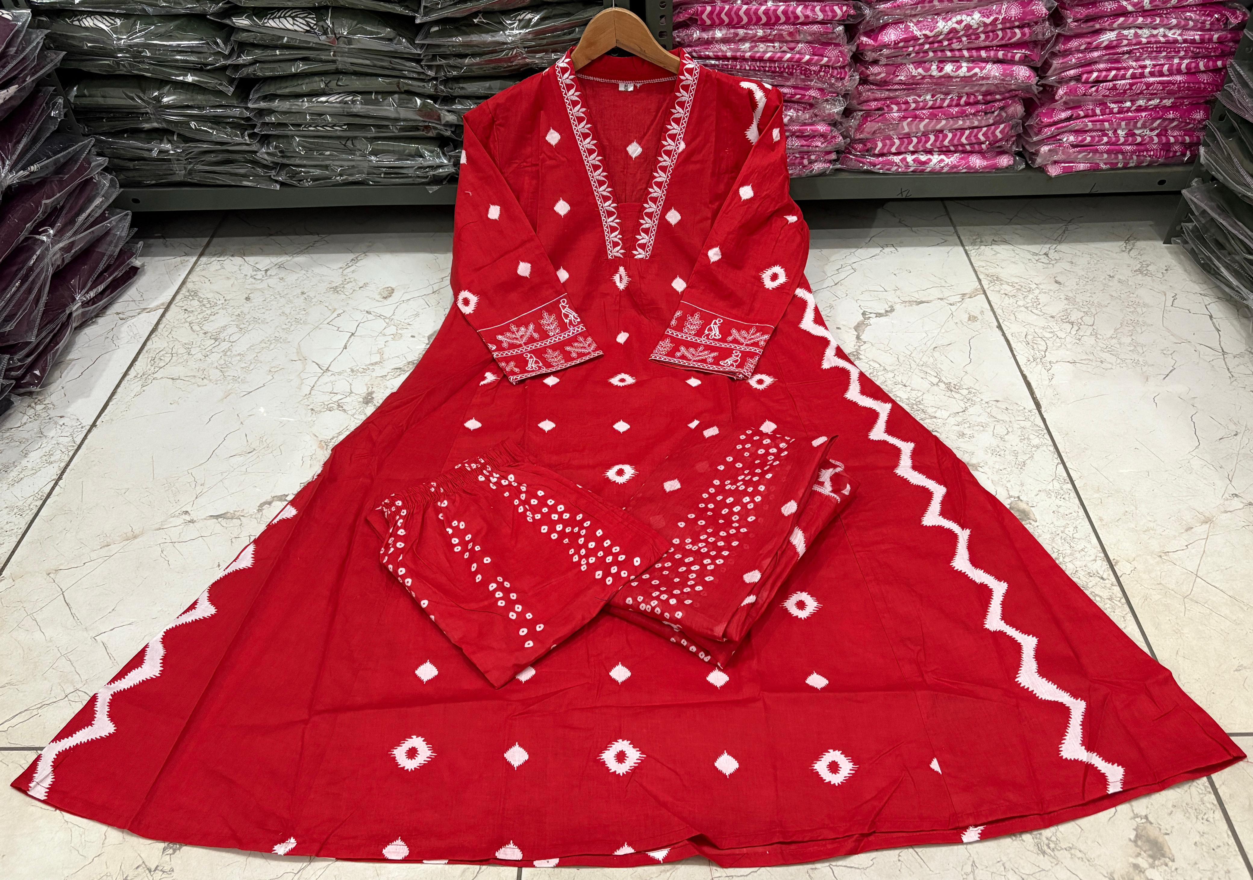 Sanganeri Print Anarkali Kurta Set – Cotton Malmal Dupatta