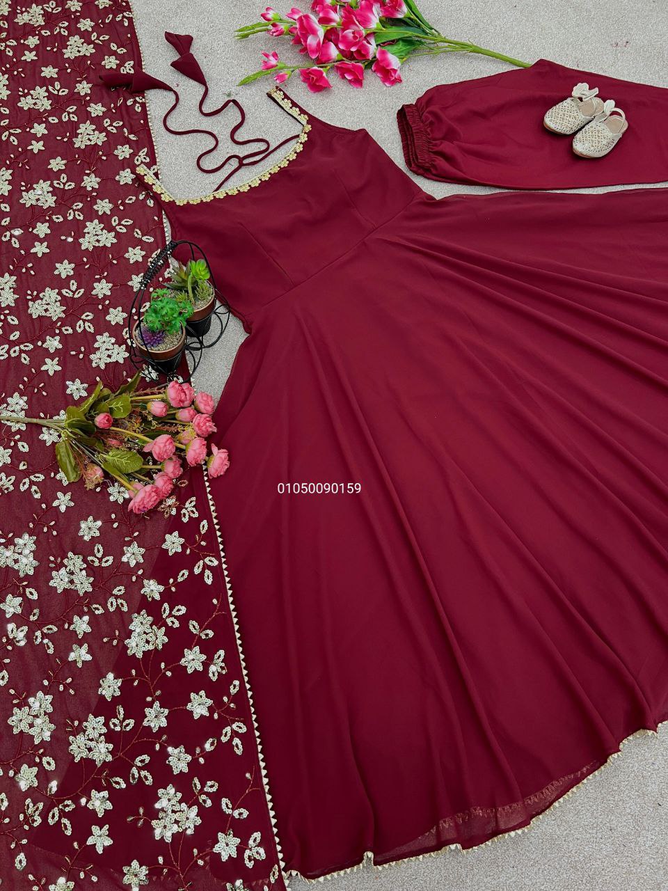 Starlit Grace – Fox Georgette Embroidered Gown Set