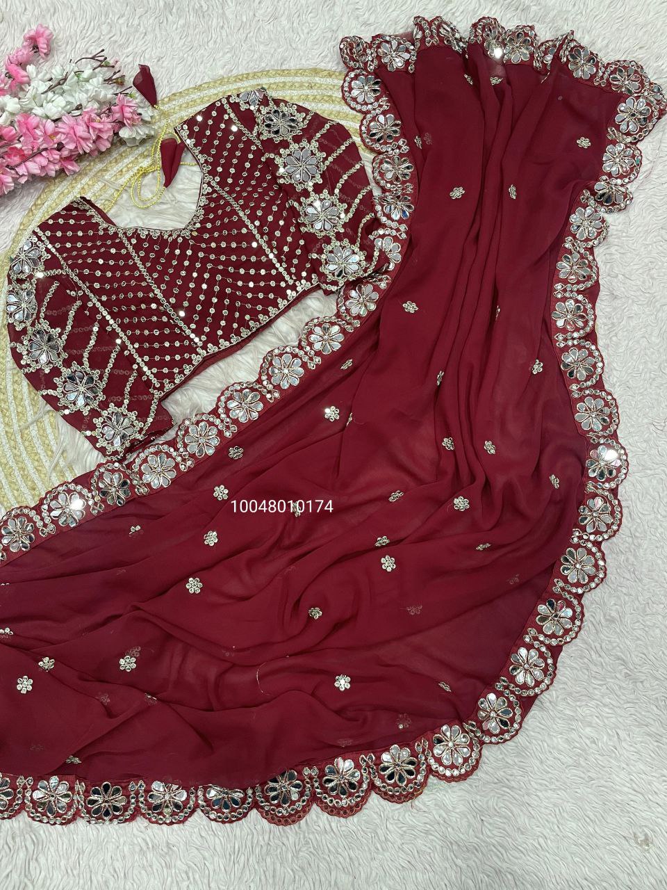 Grace Allure – Barberry Chiffon Embroidered Saree