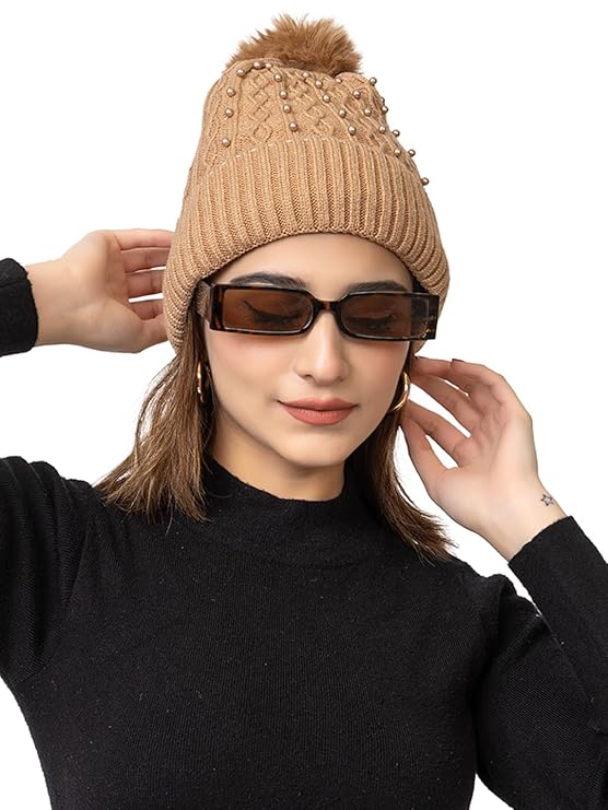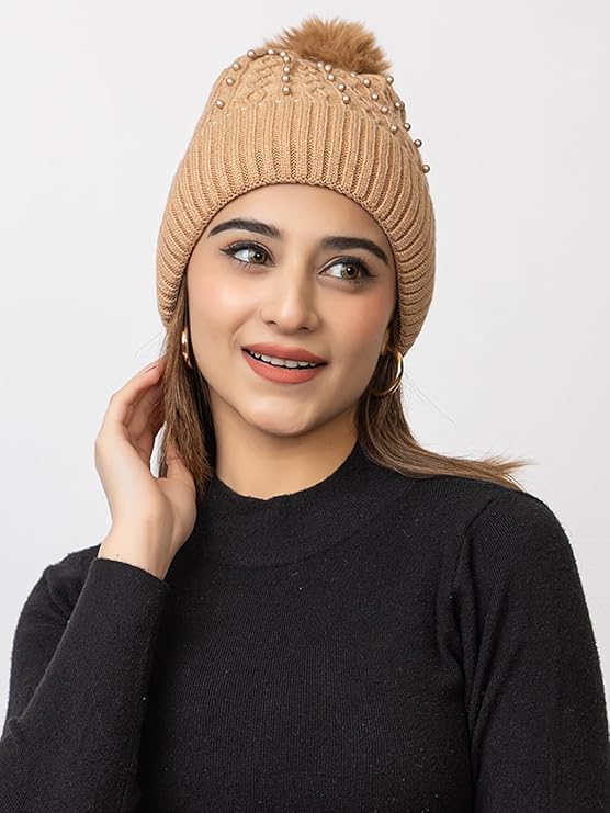Women’s Woolen Soft Knitted Beanie Cap with Fleece for Cold Weather