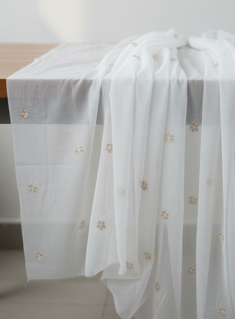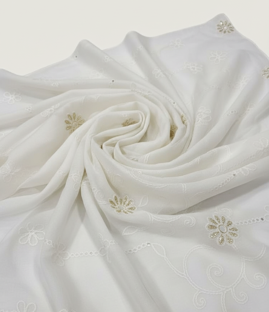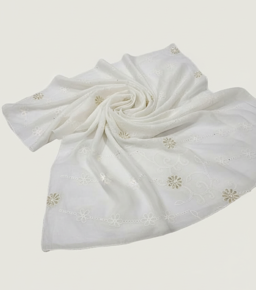 White Chanderi Silk Embroidered Work Dupatta for Women – Festive Wear