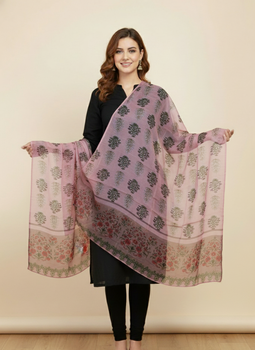 Organza Pink Digital Print Dupatta with Latkan – 82 x 34 Inches