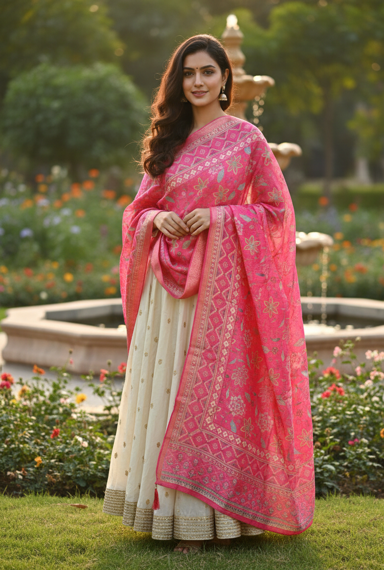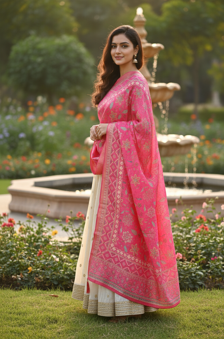 White Chanderi Silk Dupatta with Traditional Gota Patti Handwork