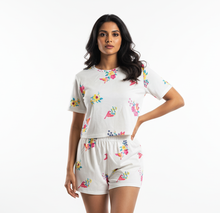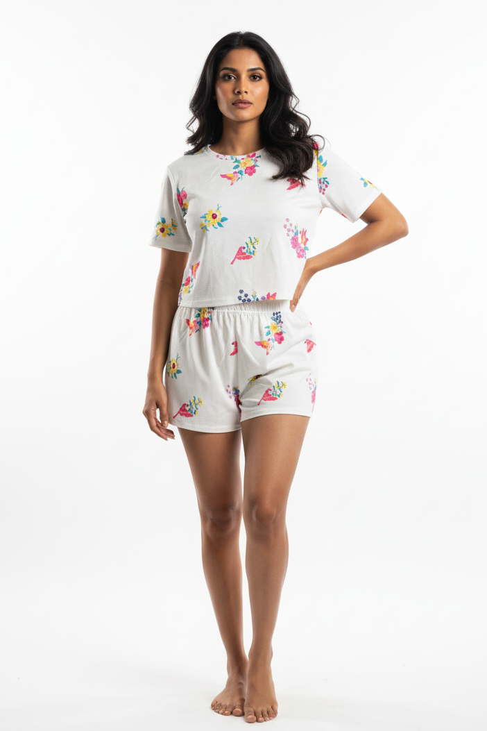 Women’s Digital Print Top & Shorts Set – Fibre Lycra