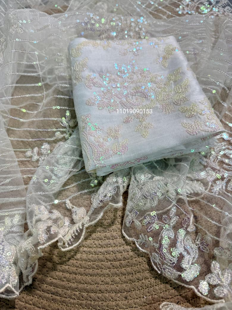 Paired with a beautifully embroidered unstitched silk blouse, this piece is perfect for weddings, cocktail nights, receptions, or any celebration where you want to look effortlessly glamorous.