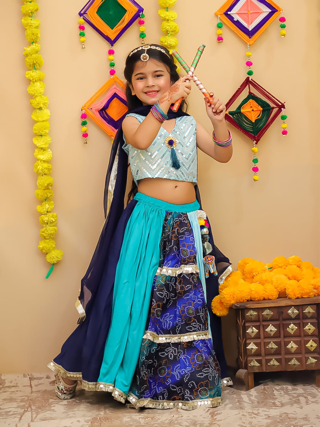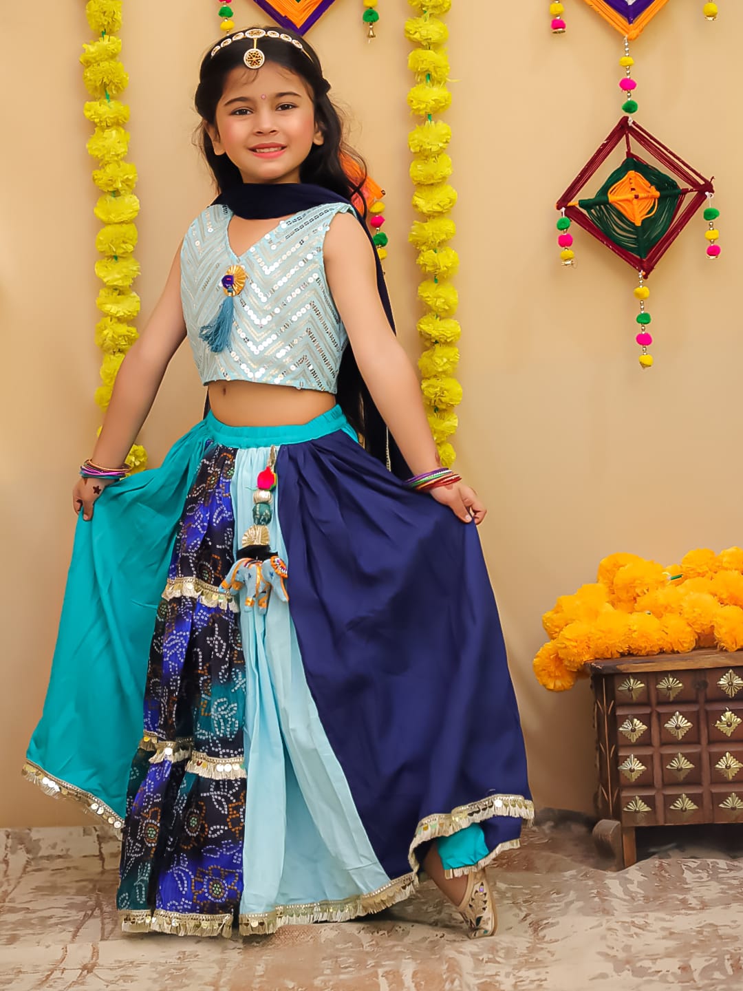 Celebrate this festive season in style with Joshi Fashion’s Dandiya Special Girls Lehenga Set, part of our exclusive Sibling Launch Collection! Designed for twinning magic during Navratri and Garba nights, this vibrant outfit features a sleeveless blouse, a multi-color half kalidar lehenga with a freely flowing one-side drape, and a coordinated chunni to complete the traditional yet trendy look.
