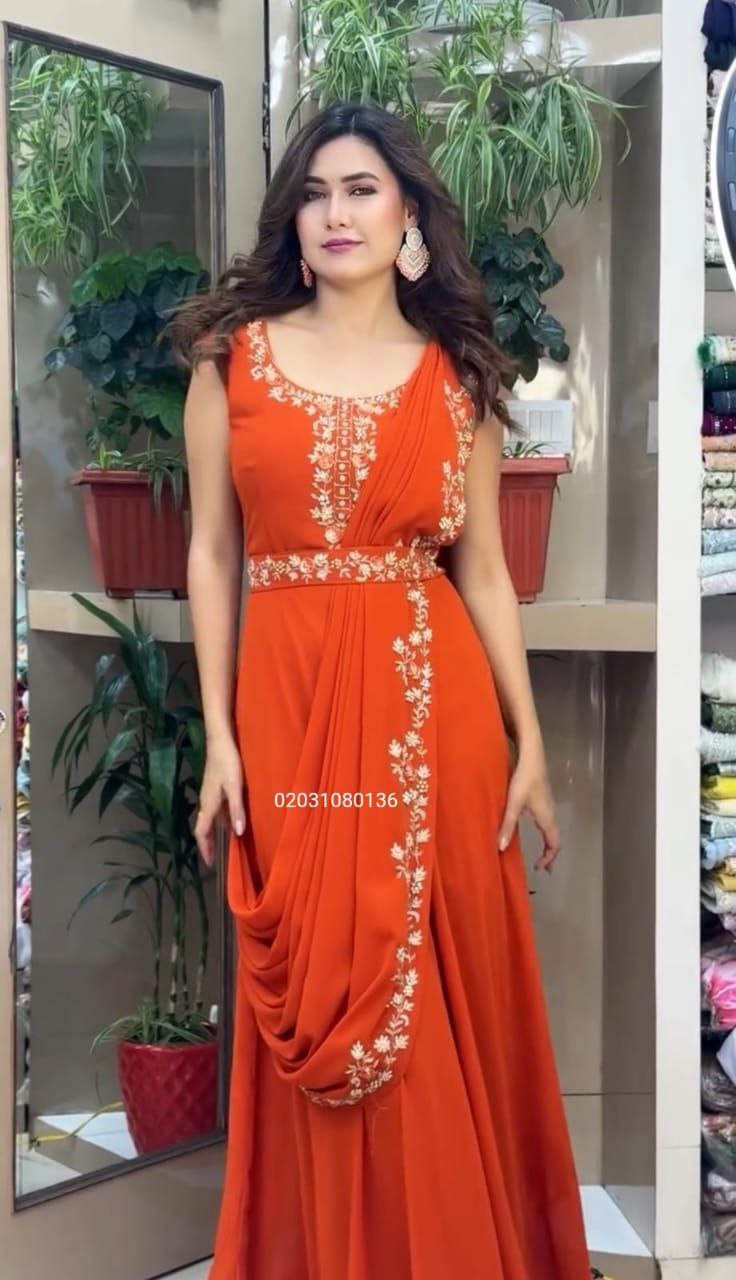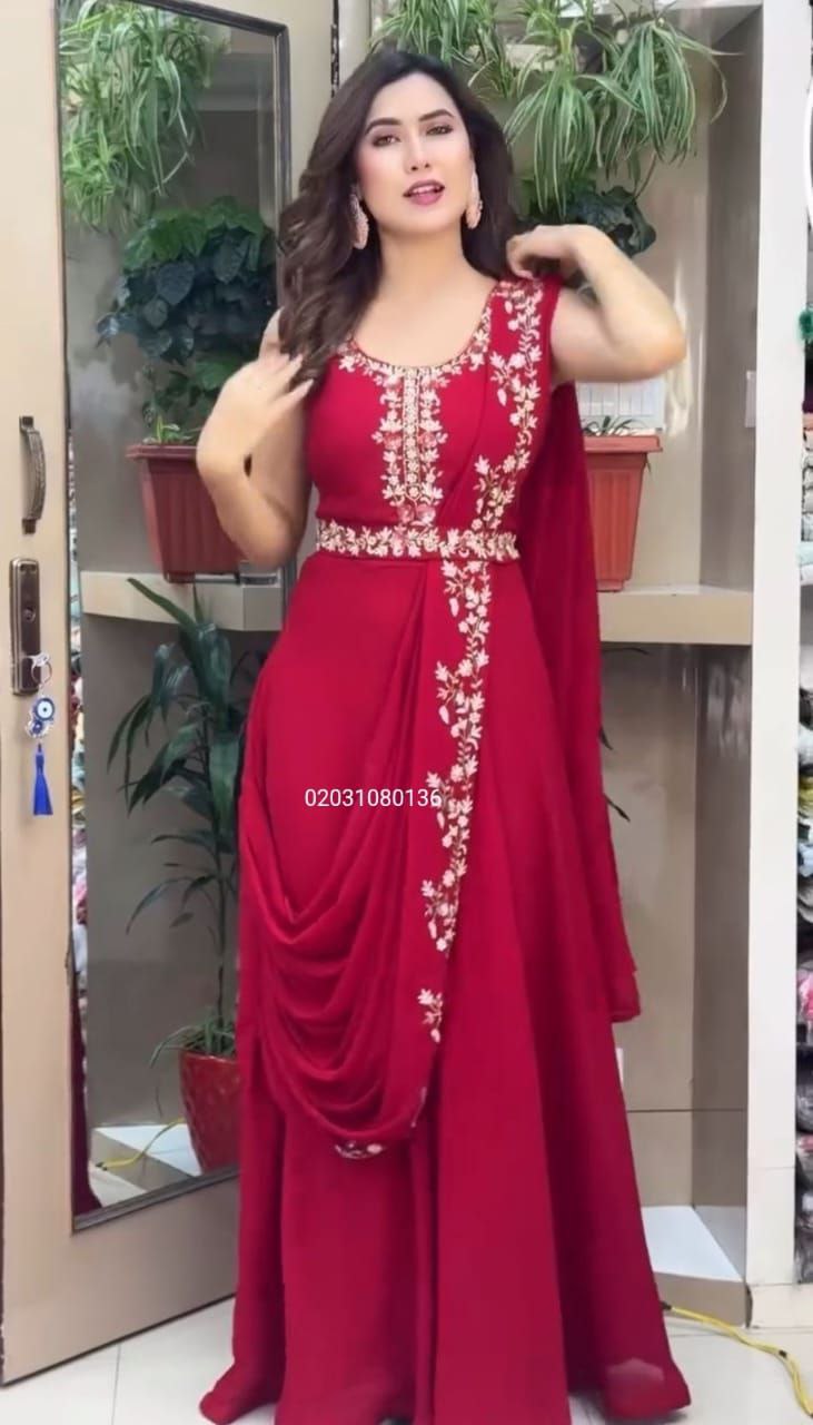 Elevate your ethnic collection with this elegant fully stitched gown and dupatta set from Joshi Fashion. Designed in heavy georgette fabric, the gown features beautiful embroidery work that adds a luxurious and festive appeal. It comes with a soft micro cotton inner lining for all-day comfort. The matching georgette dupatta is also adorned with delicate embroidery, completing the sophisticated look.