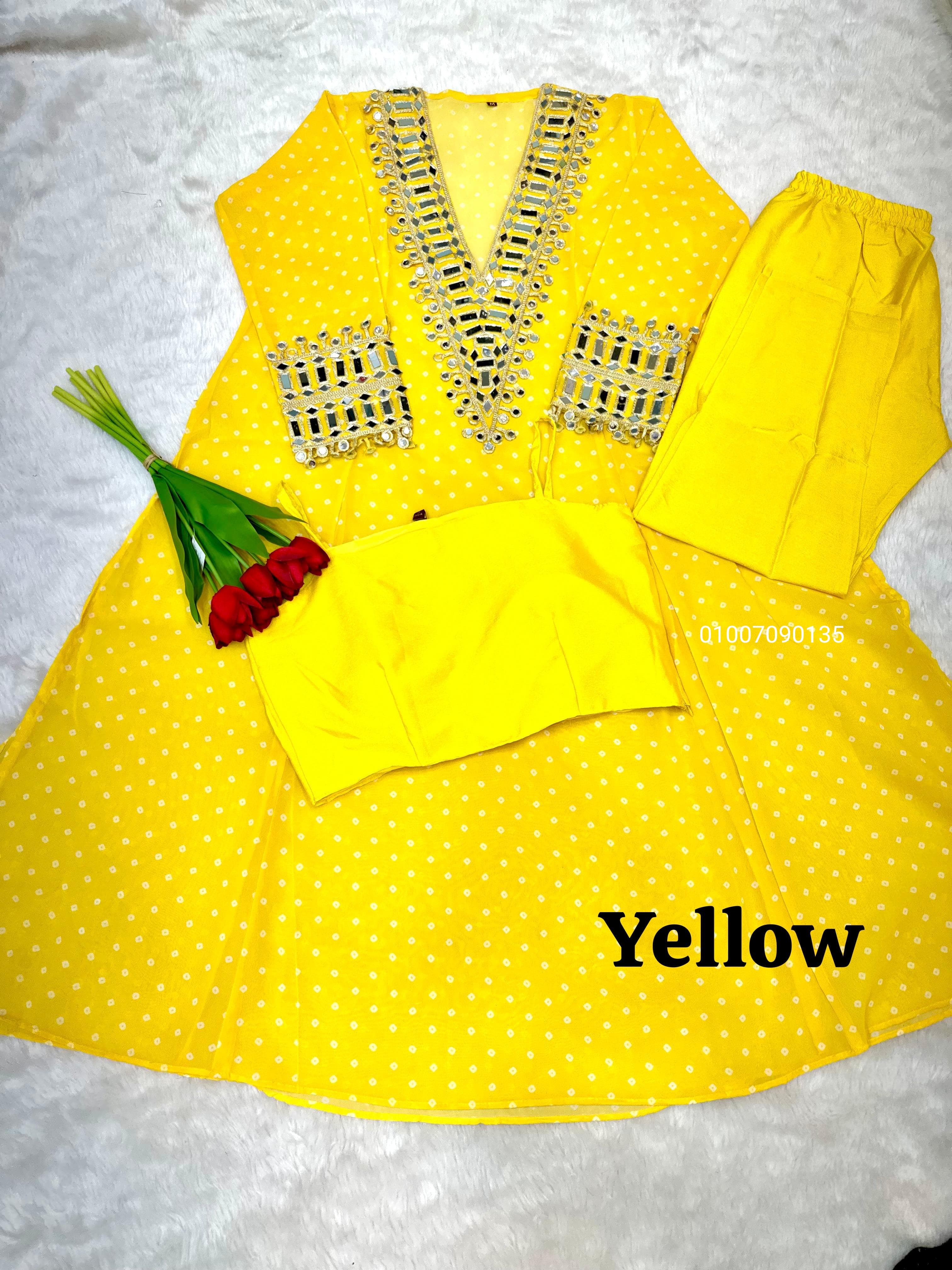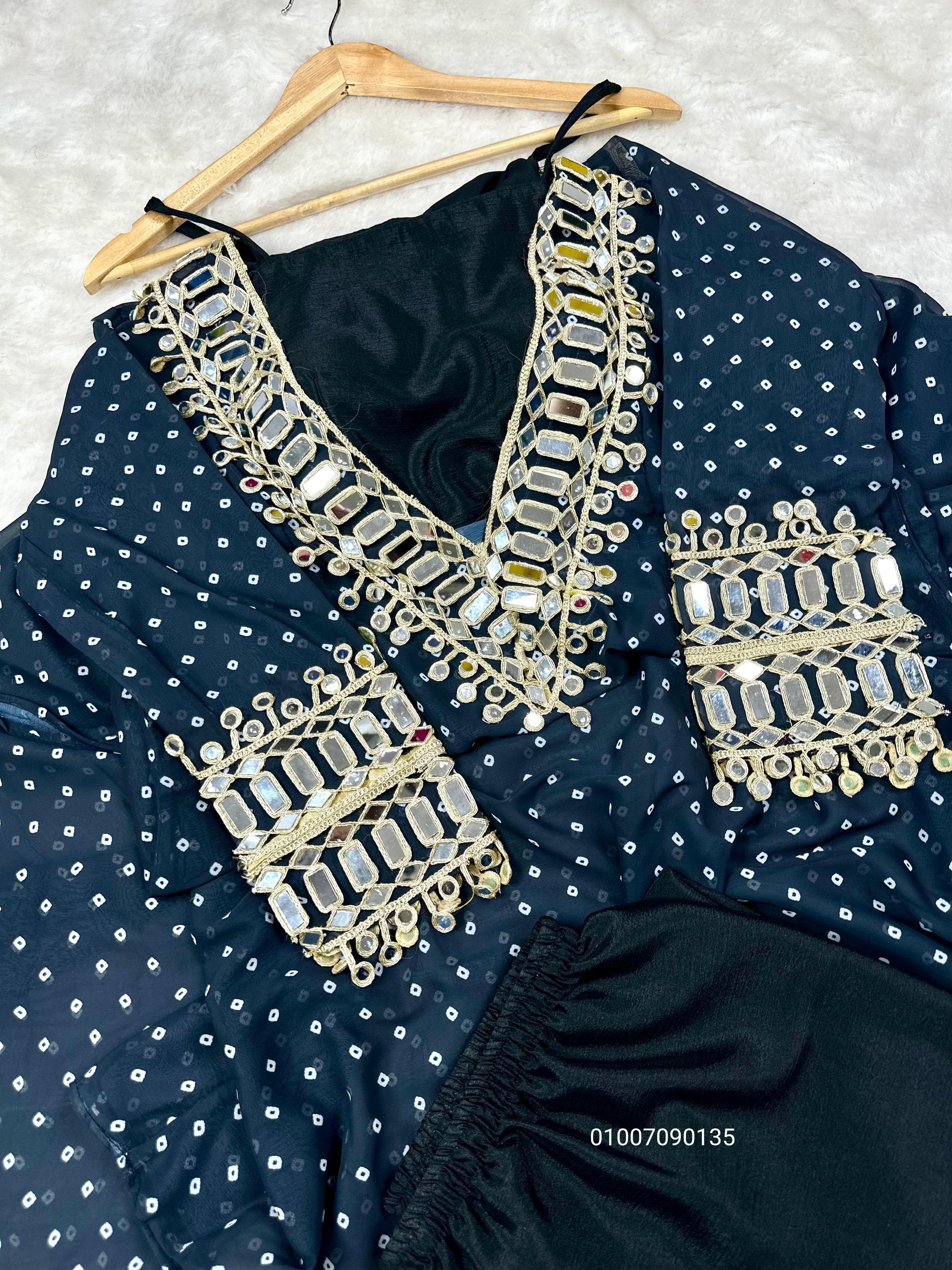 Elevate your ethnic wardrobe with this designer Anarkali Kurti Set from Joshi Fashion – a perfect blend of sophistication, comfort, and festive elegance. Crafted from heavy-quality Fox Georgette, this set features detailed coded embroidery, mirror lace work, and a flowing silhouette that flatters every body type. Ideal for festive functions, evening wear, or traditional gatherings.