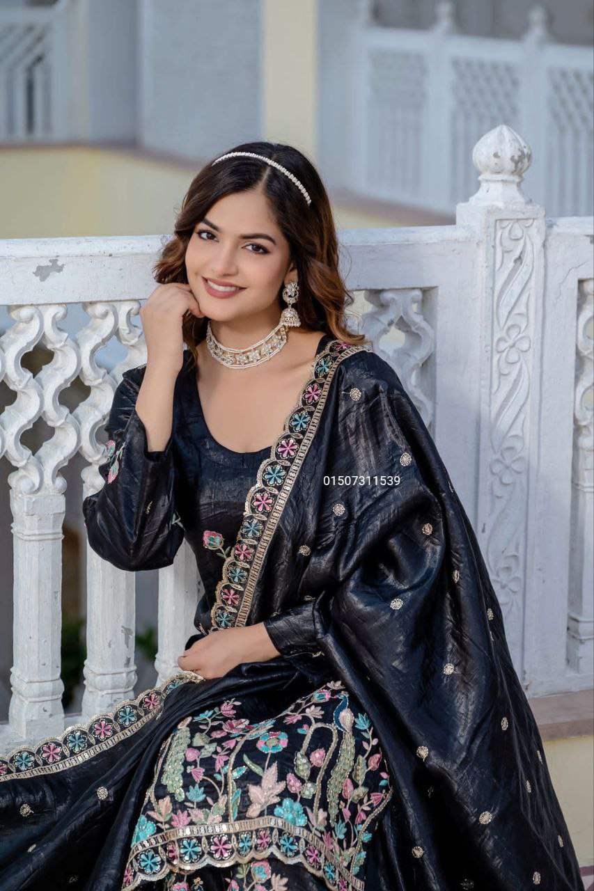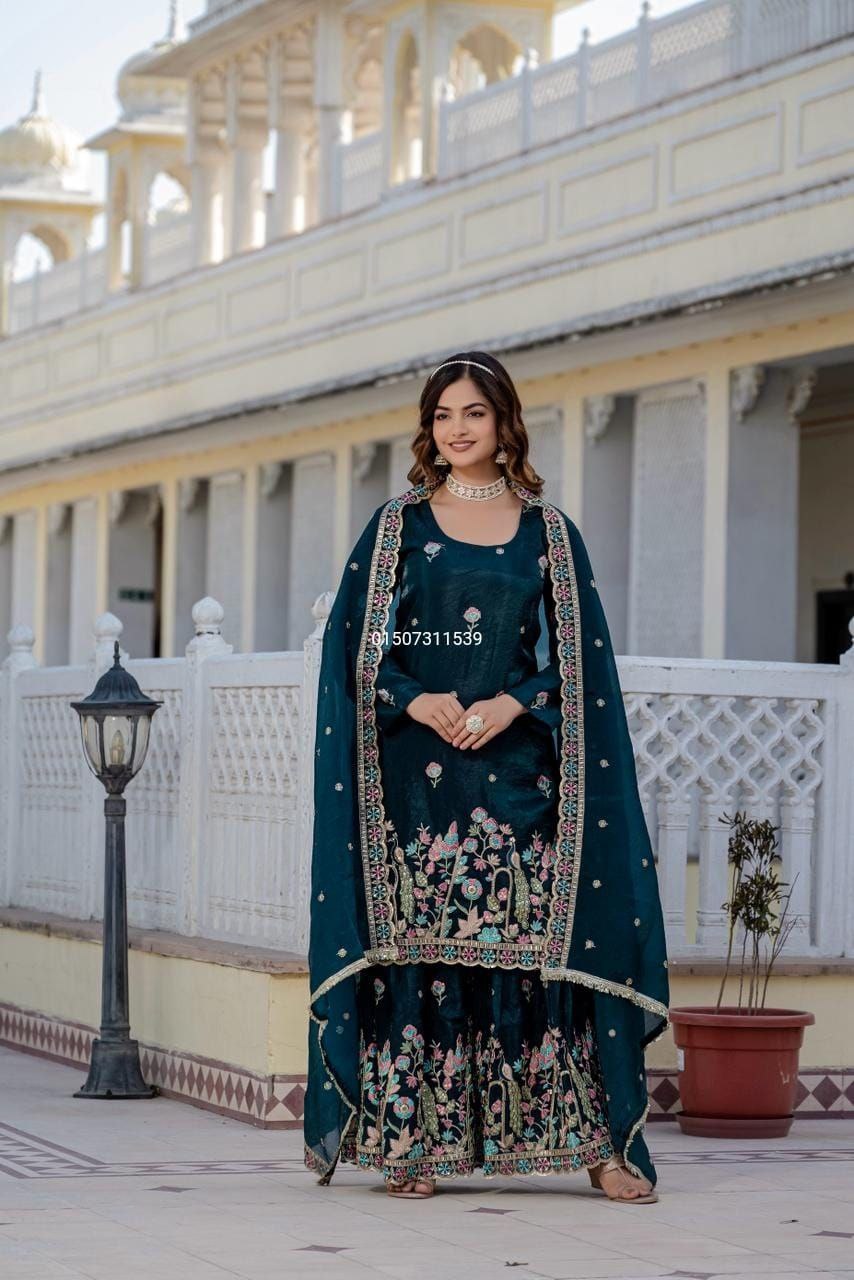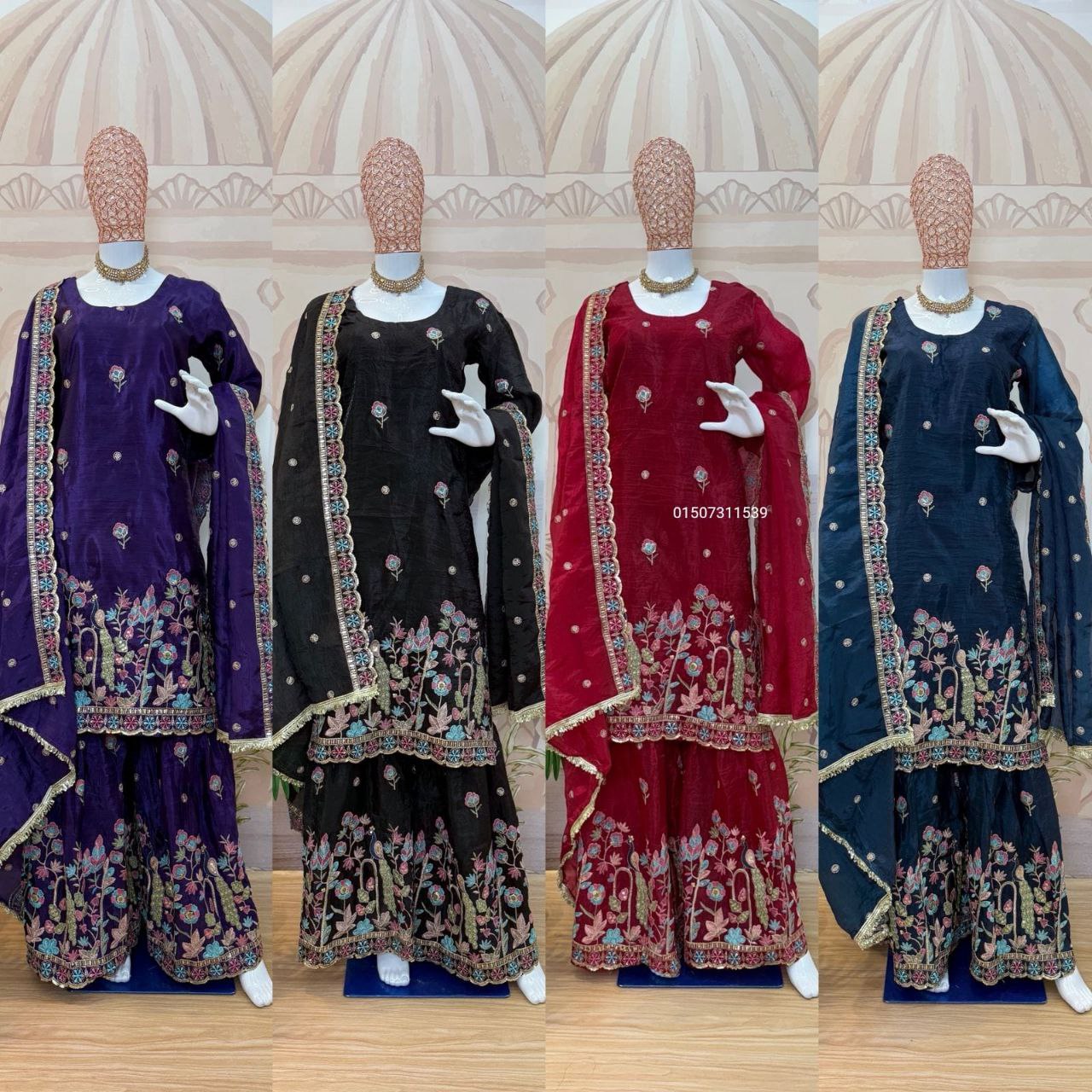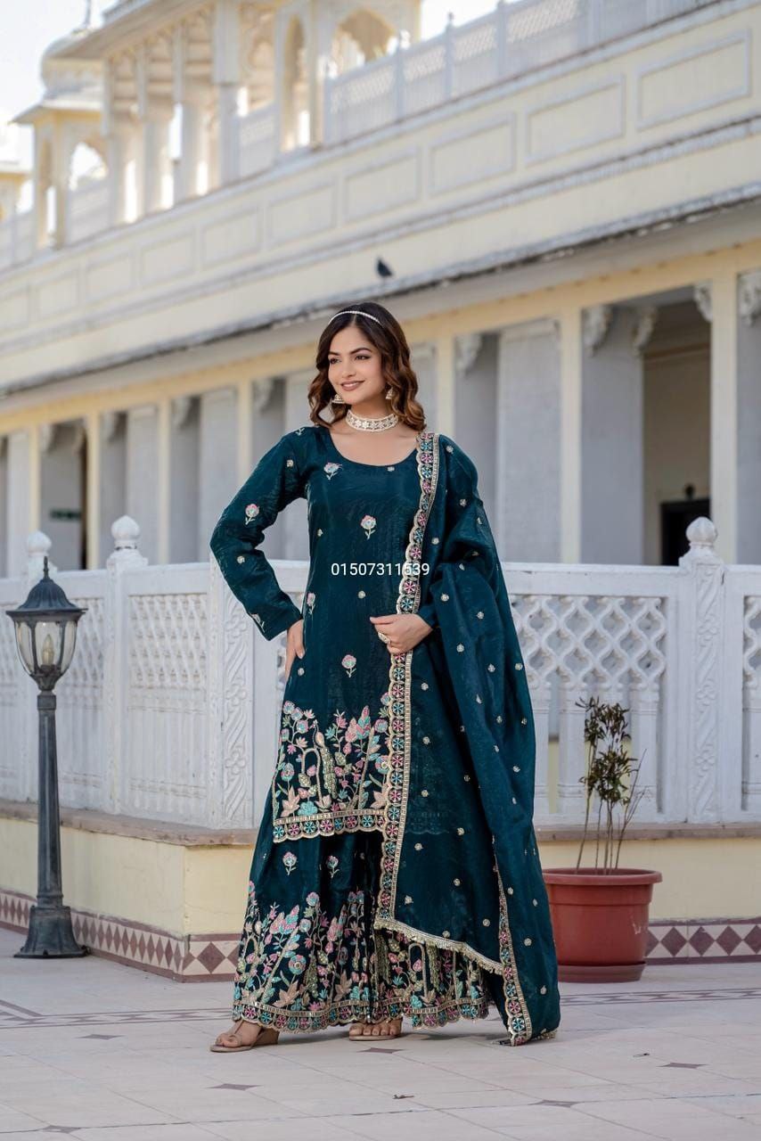 Step into luxury with Golden Allure, a premium 3-piece Kurti Palazzo Dupatta Set from Joshi Fashion, crafted from rich Gold Crush fabric. This dazzling ensemble features dual sequins heavy embroidery on both the front and back of the kurti, with detailed daman work and elegant 18-inch sleeves.