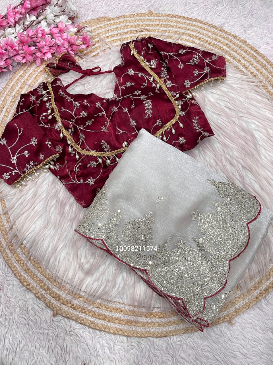 Experience the art of elegance with the Grace Allure Saree by Joshi Fashion, crafted from luxurious Barberry Chiffon and adorned with C-Pallu 3mm sequin coding embroidery. The body of the saree features delicate sequin butti work, giving it just the right shimmer for festive or evening occasions.
