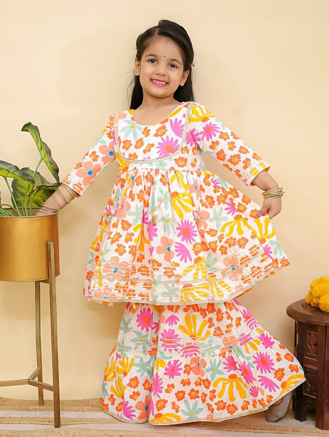 👗 Style: Floral Printed Kurta with Flared Sharara