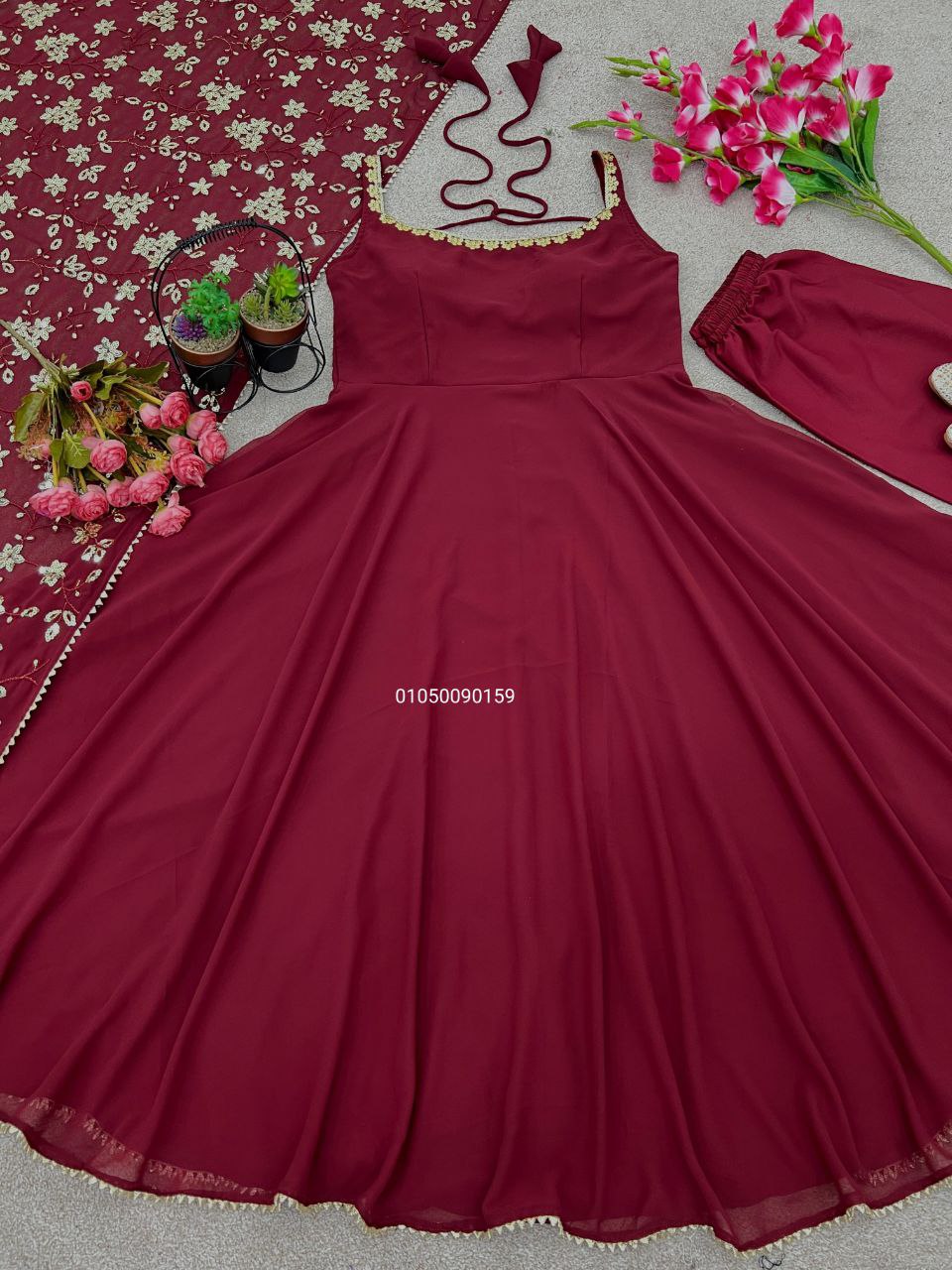 🧣 Dupatta Fabric: Heavy Faux Georgette with Embroidery & Lace Border