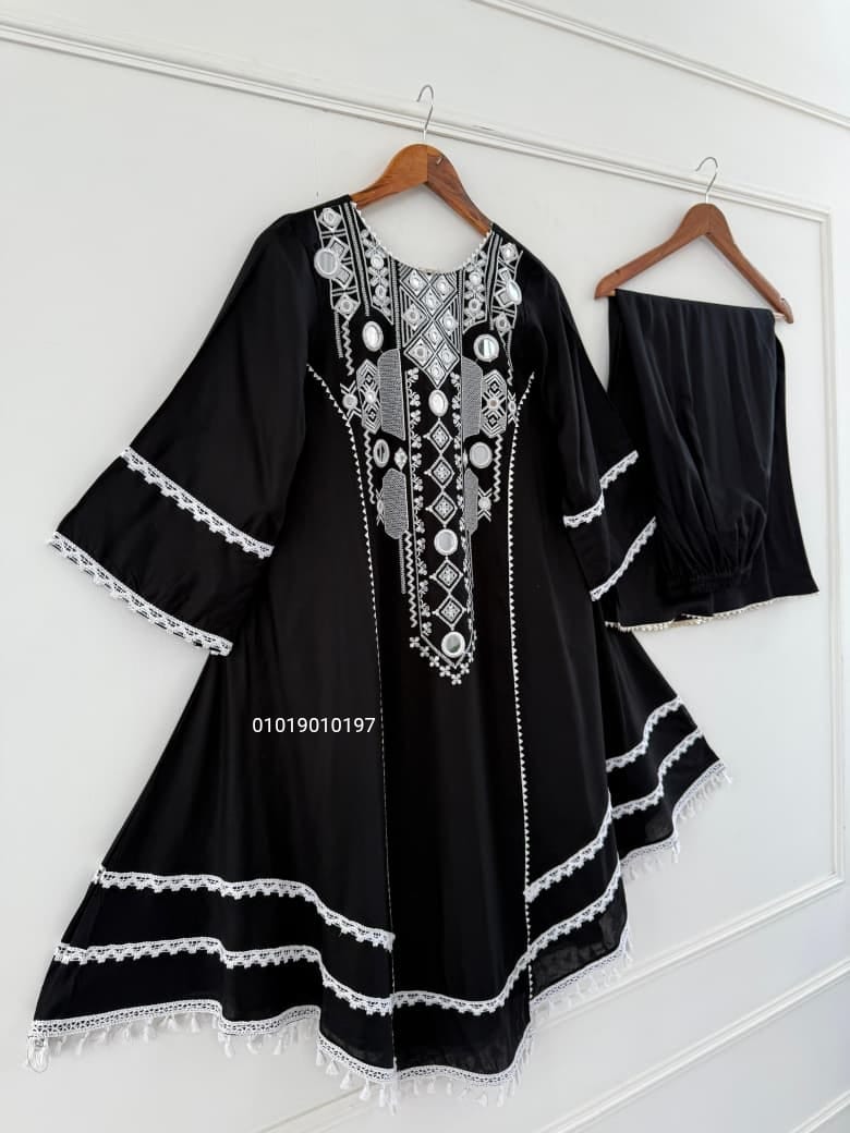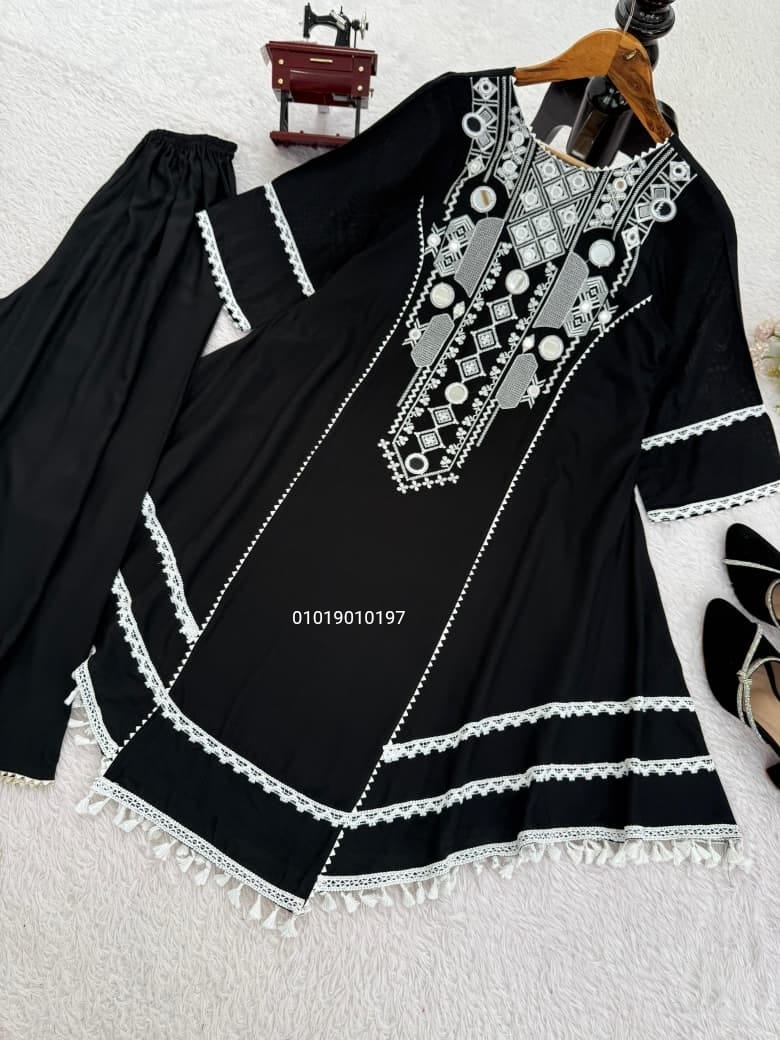 Add charm and elegance to your ethnic wardrobe with Joshi Fashion’s Designer Top Plazzo Set, crafted in breathable Reyon Cotton and adorned with thread work, real mirror embellishments, fancy lace borders, and cute latkans. The top is lined with soft micro cotton for all-day comfort and finished to a graceful 43-inch length.