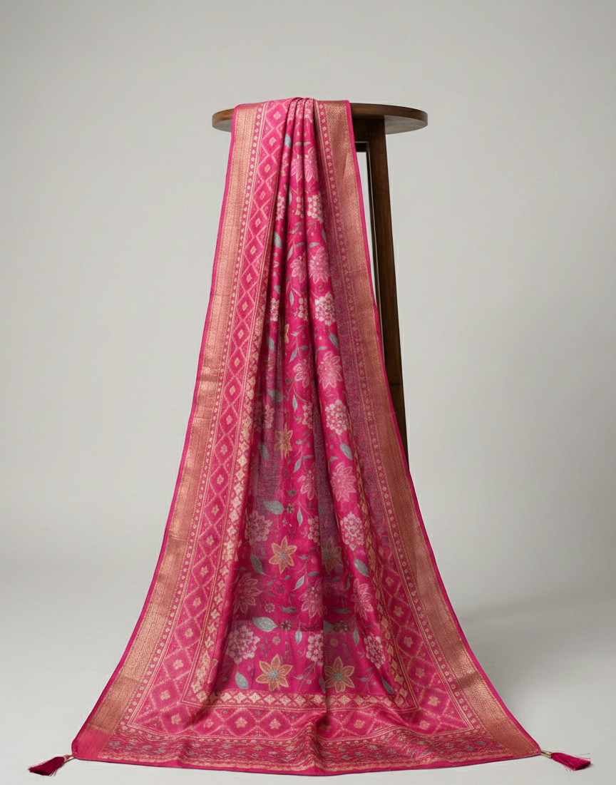 Add a touch of elegance to your ethnic look with this Organza Pink Digital Print Dupatta. Crafted from premium-quality organza fabric, it features beautiful digital prints that enhance its graceful appeal. The lightweight and sheer texture drapes effortlessly, making it comfortable for long wear. Stylish latkan tassels on the edges add a festive charm. Measuring 82 x 34 inches, this dupatta pairs perfectly with suits, kurtis, and lehengas, making it ideal for festive occasions, weddings, parties, and traditional events.