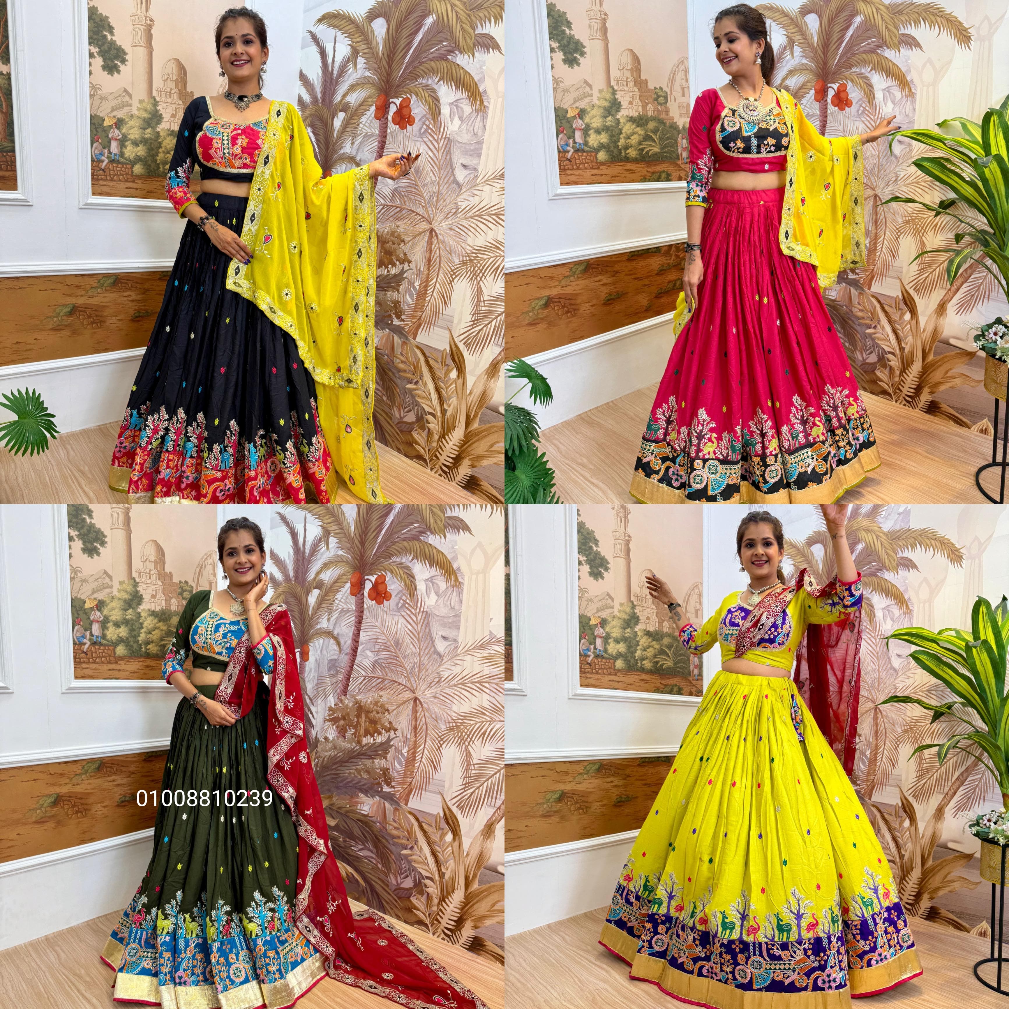 Step into elegance with the Royal Radiance Embroidered Lehenga Choli by Joshi Fashion. This stunning traditional ensemble is crafted from premium 14 KG rayon and features exquisite heavy embroidery work, perfect for weddings, festive occasions, or cultural celebrations.