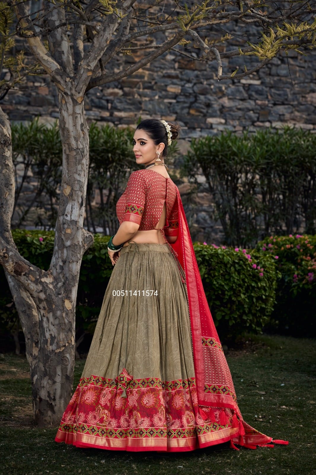 Drape yourself in tradition and elegance with this premium Tussar Silk Lehenga Choli set from Joshi Fashion. Designed for weddings, festive events, and grand occasions, this outfit blends floral charm with the brilliance of foil print. Fully stitched and ready to wear for effortless glamour.