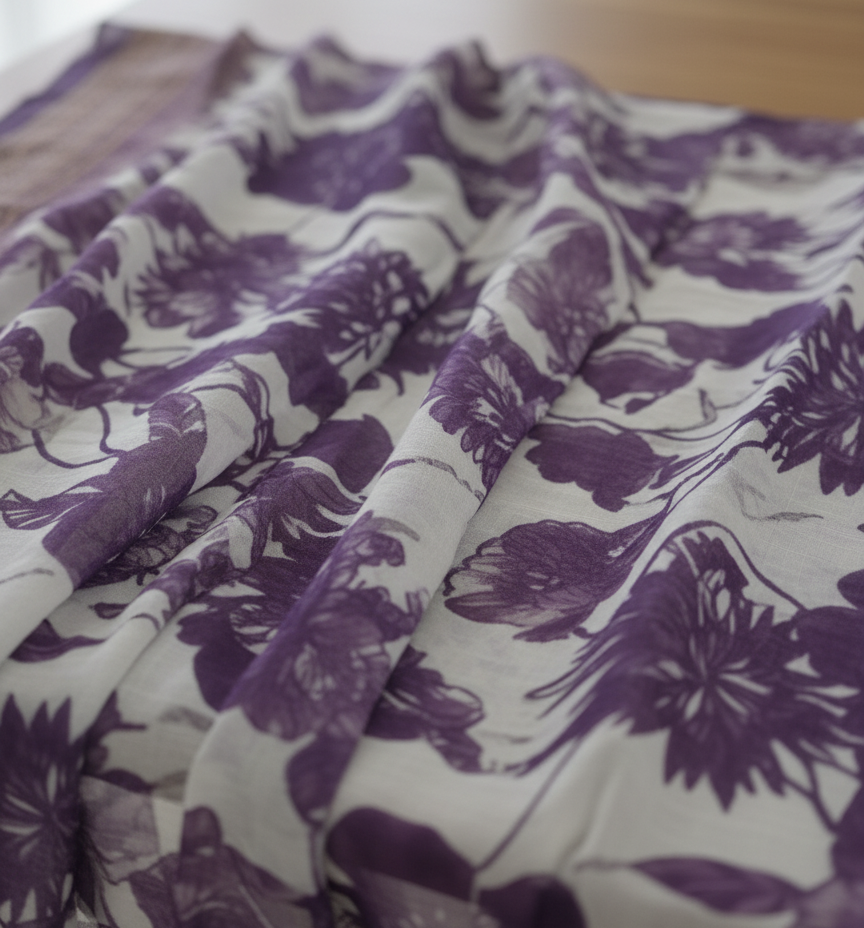Elegant white and purple floral digital print