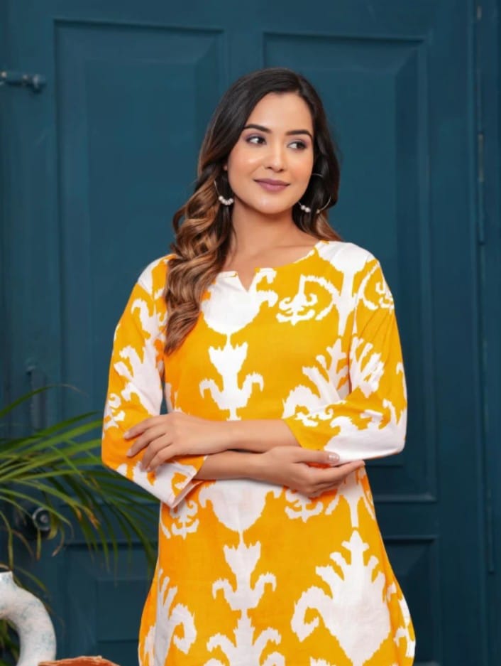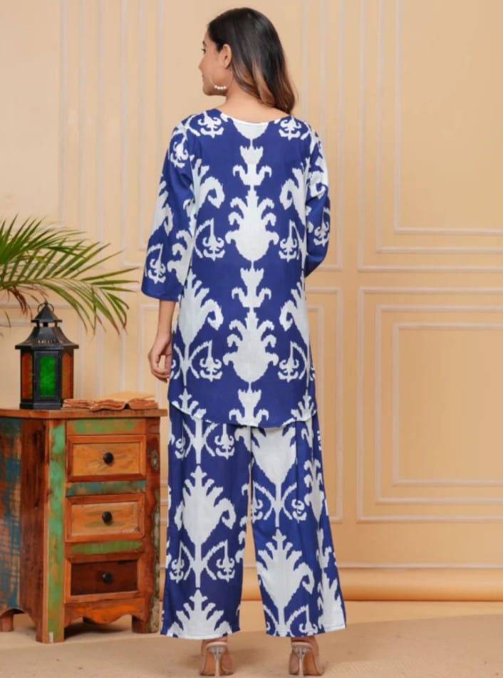 Made from premium rayon fabric, it features a straight-fit top (32″ length) paired with easy-fit bottoms (38″ length) – flattering, breathable, and stylish for all-day wear.