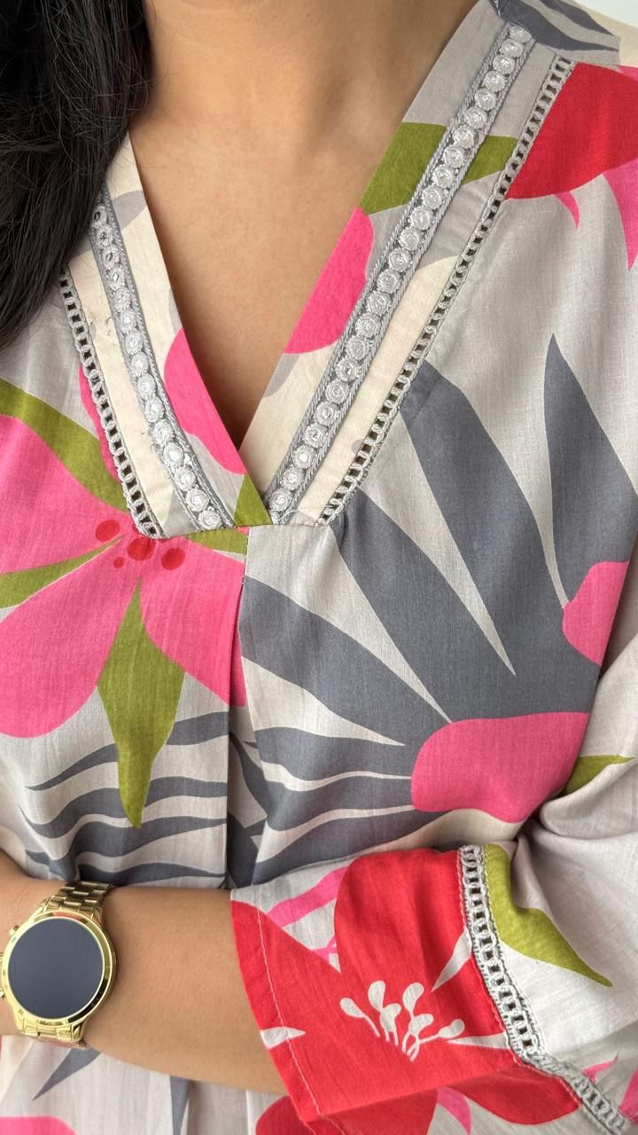 Summer Cotton Lilan Digital Print Co-ord Set