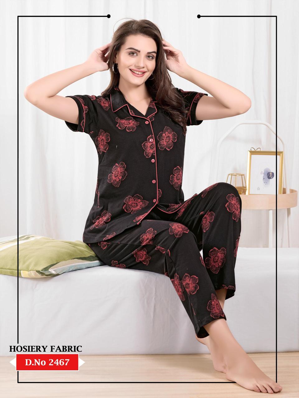 Black Hosiery Collar Night Suit – Striped