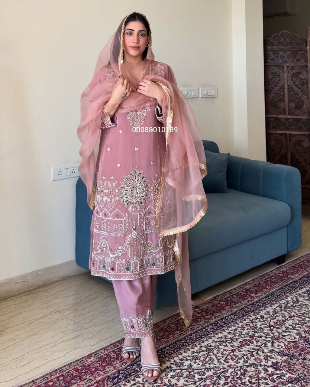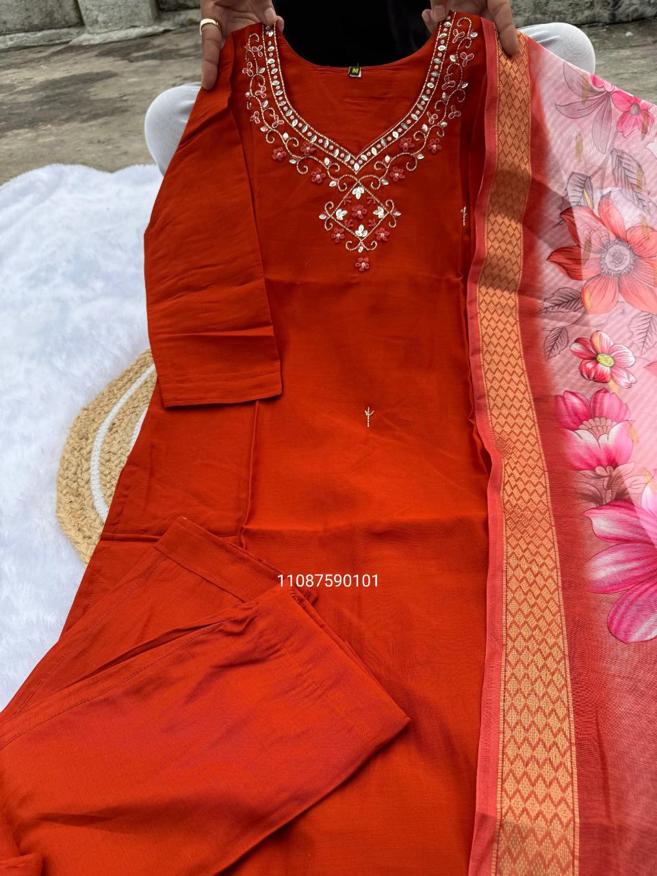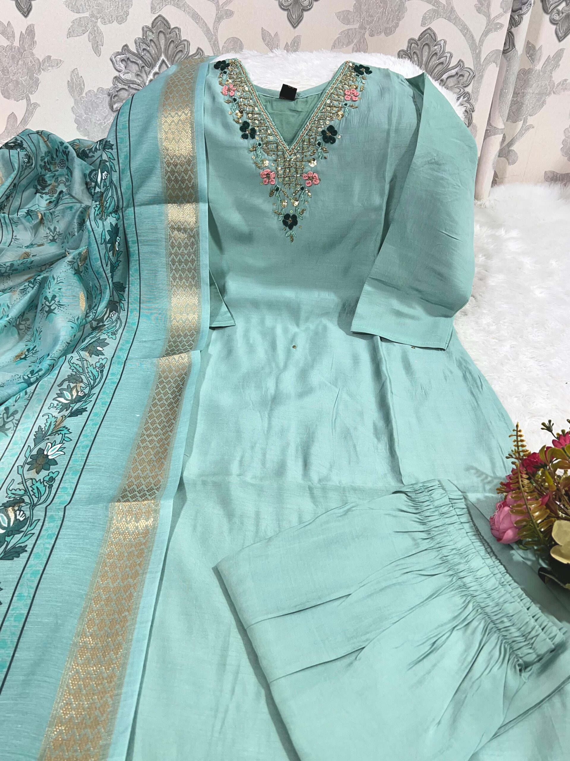Women’s Kurti Plazzo Set with Digital Jacquard Dupatta & Khatli Hand Work
