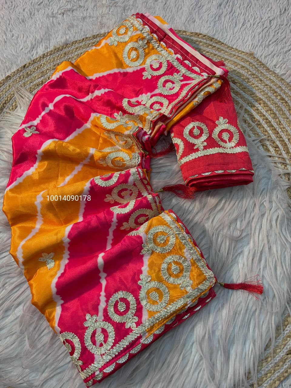 Lehriya Chinon Silk Prism Saree with Gota Work