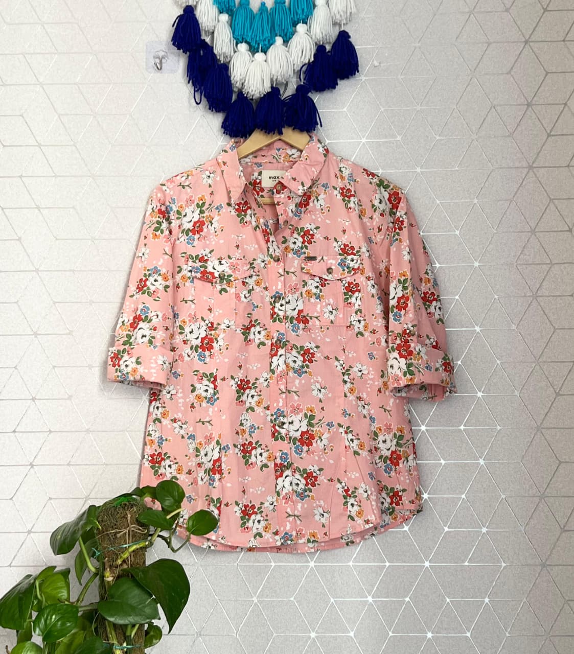 Summer Floral Cotton Shirt with Double Pockets