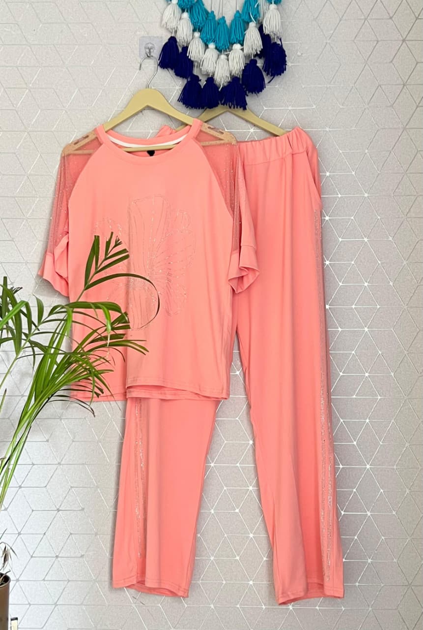 Premium Scuba Cotton Stone Work Co-ord Set