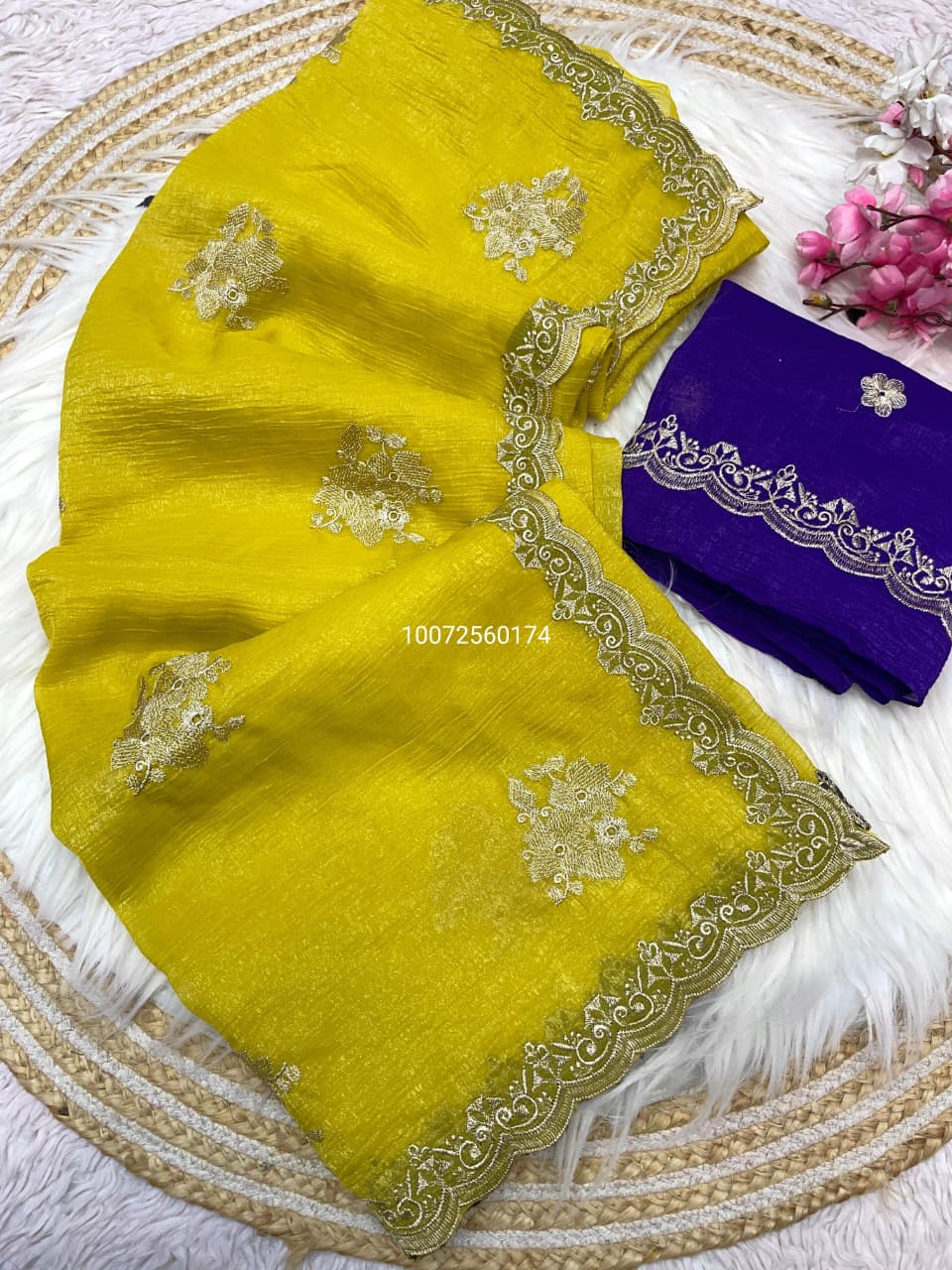 Golden Bloom – Embroidered Zari Chiffon Saree