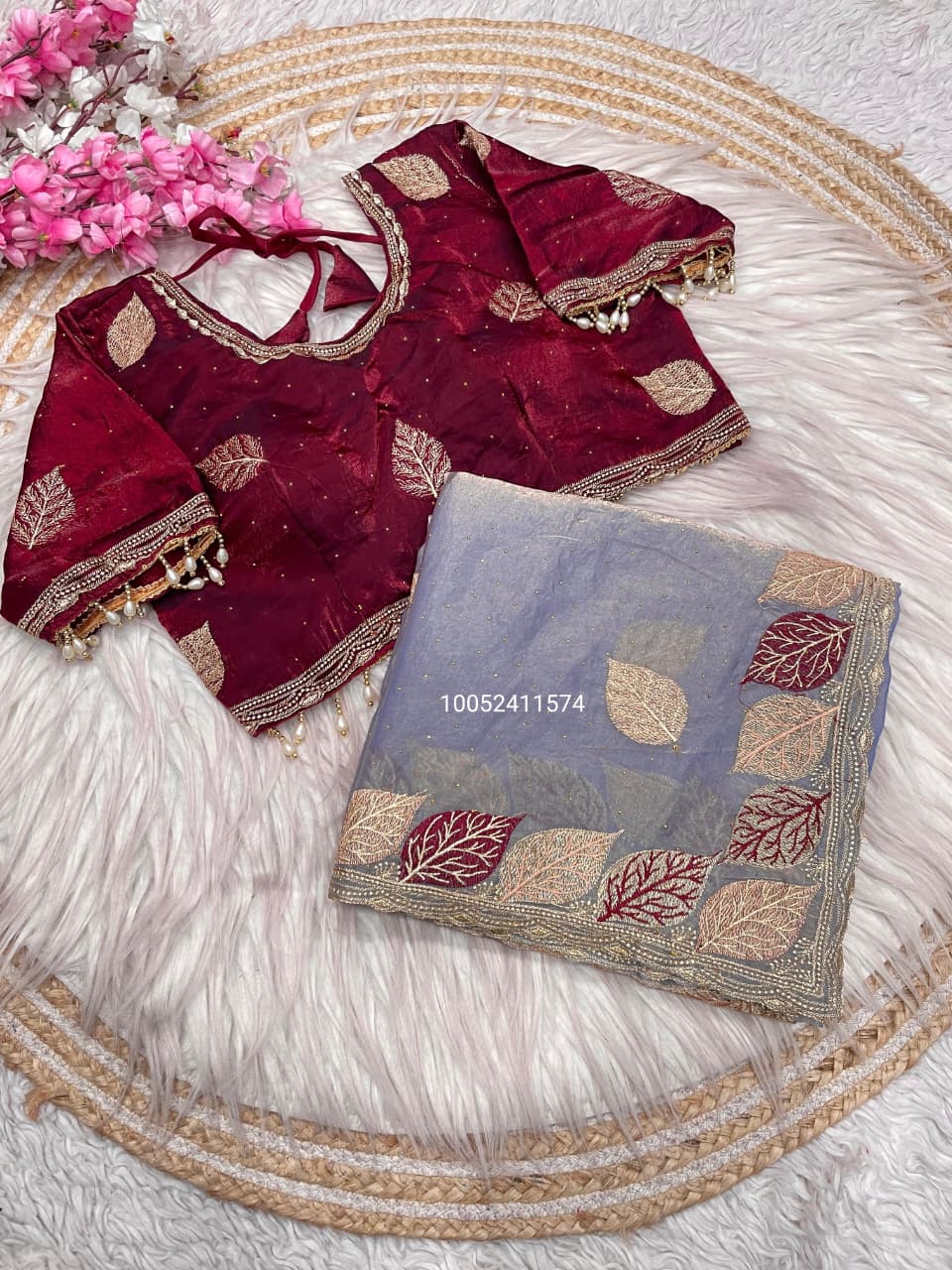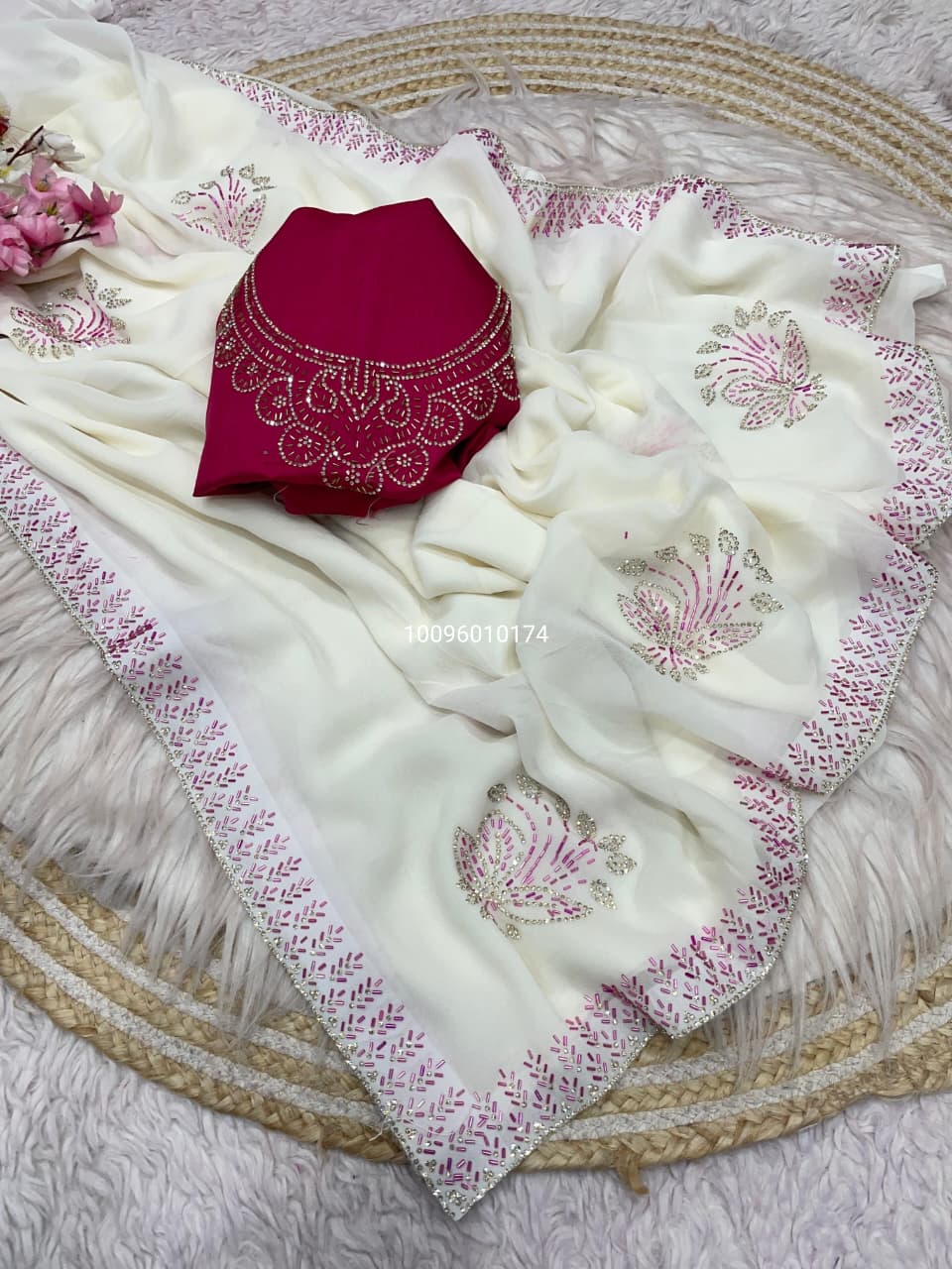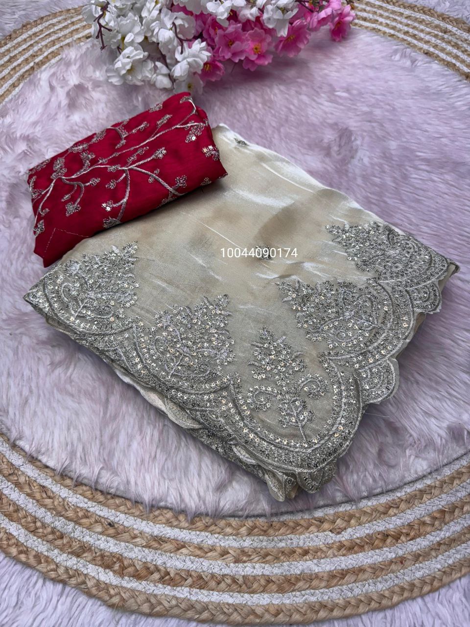 Elegance Bloom Organza Handwork Saree