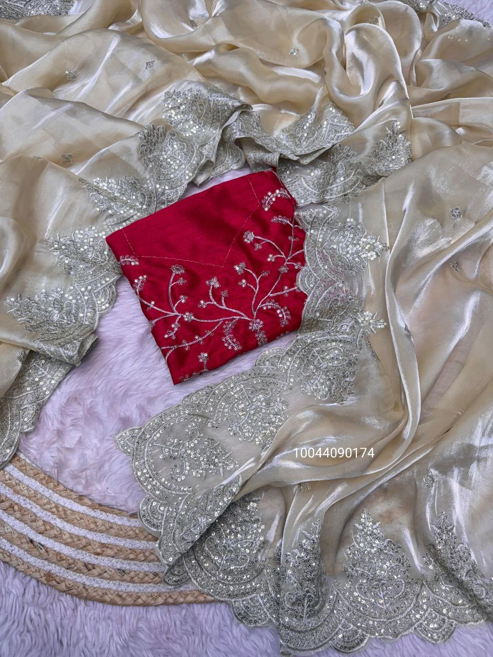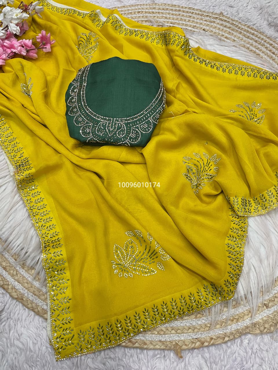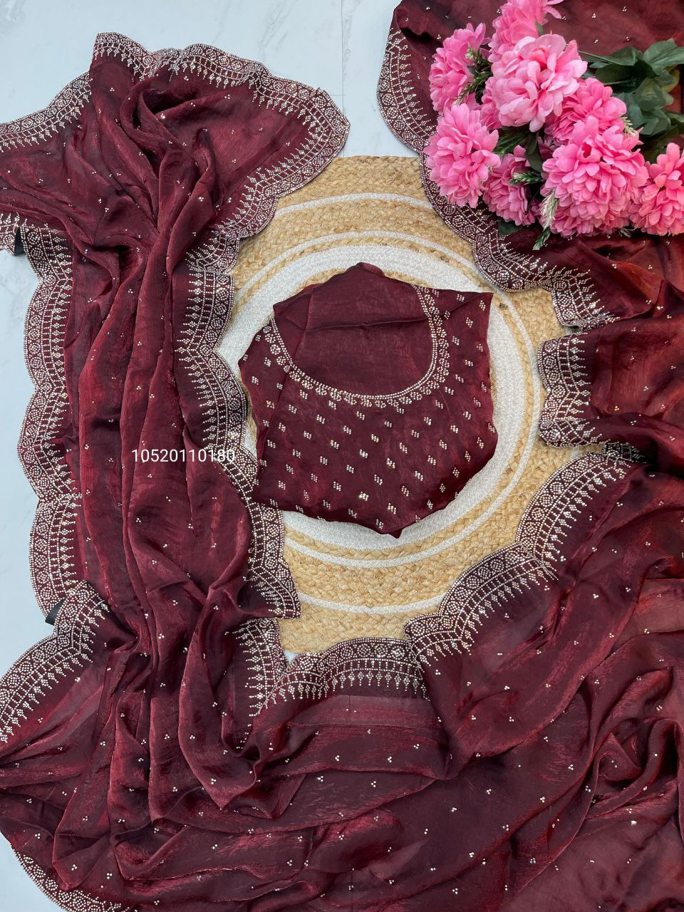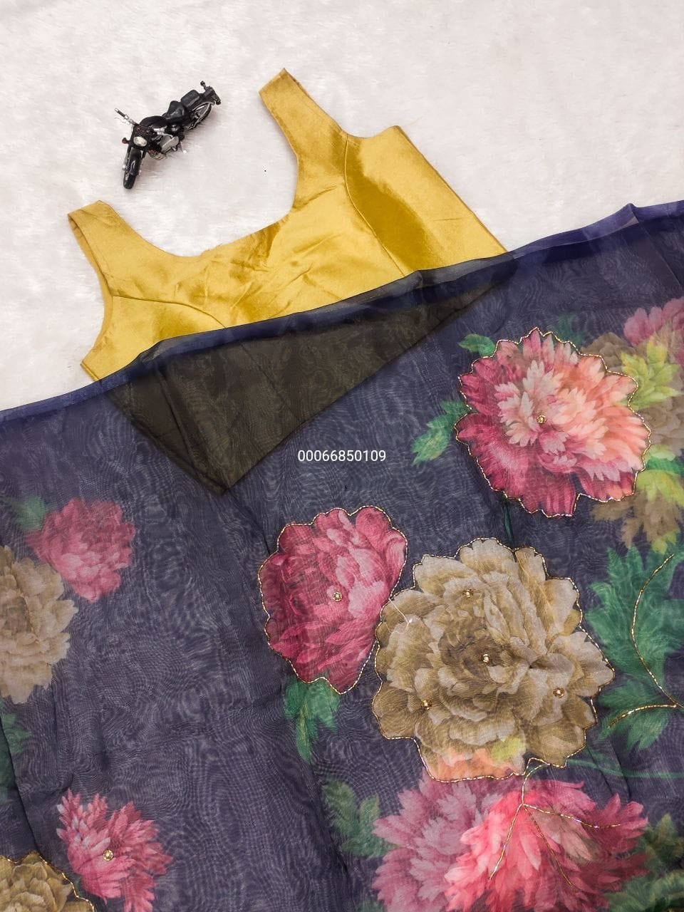 Elegance Bloom Organza Handwork Saree