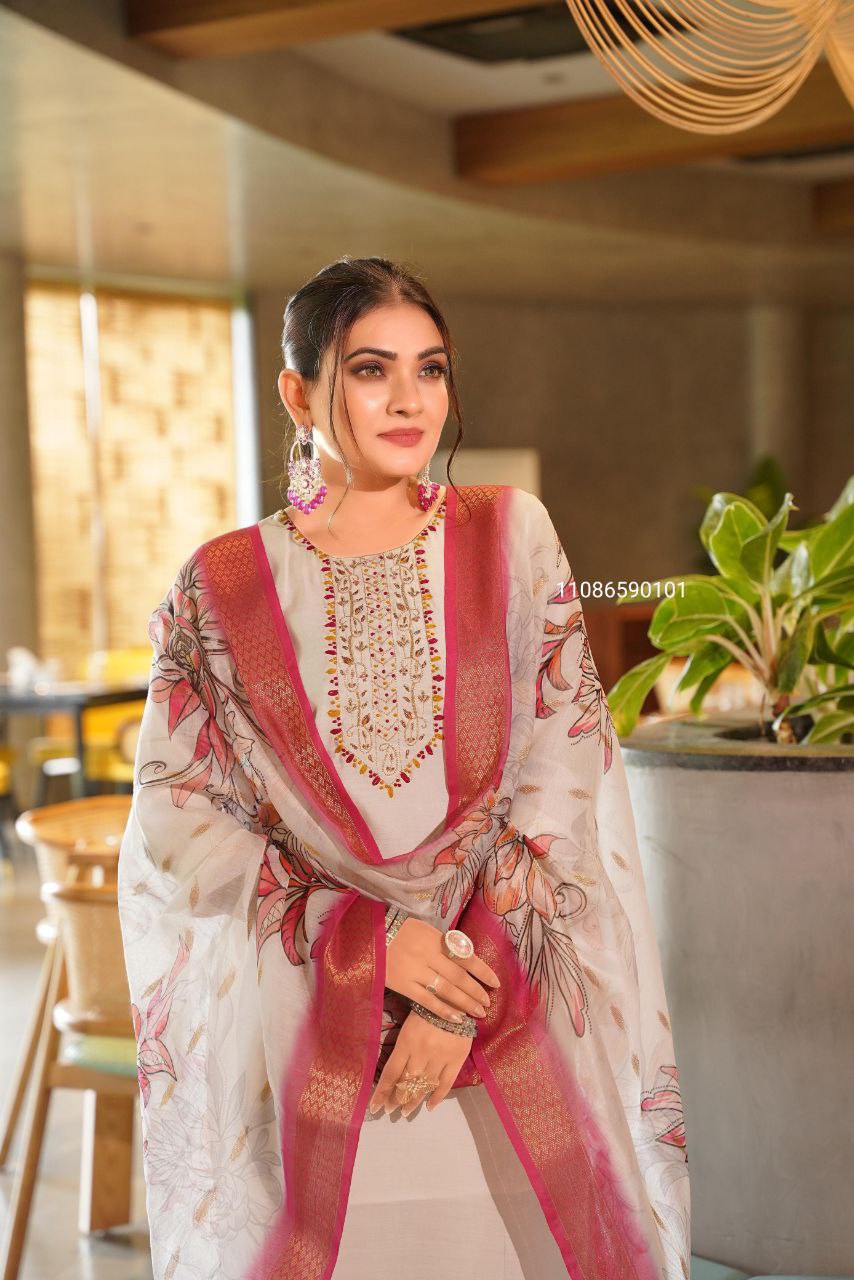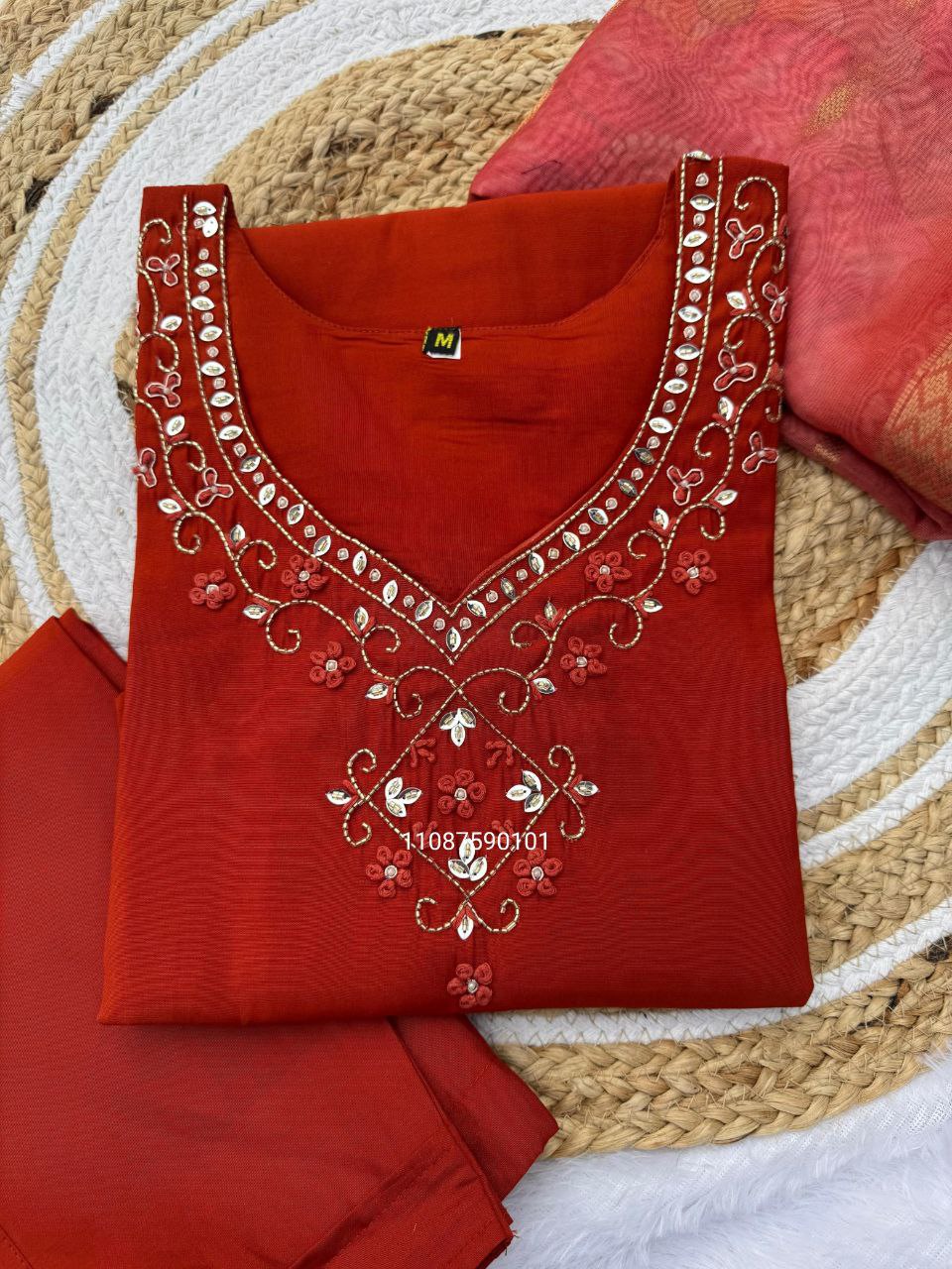 Heavy Embroidered Cotton Suit Set – Malmal Dupatta