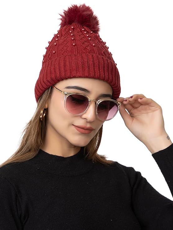 Women’s Woolen Soft Knitted Beanie Cap with Fleece for Cold Weather